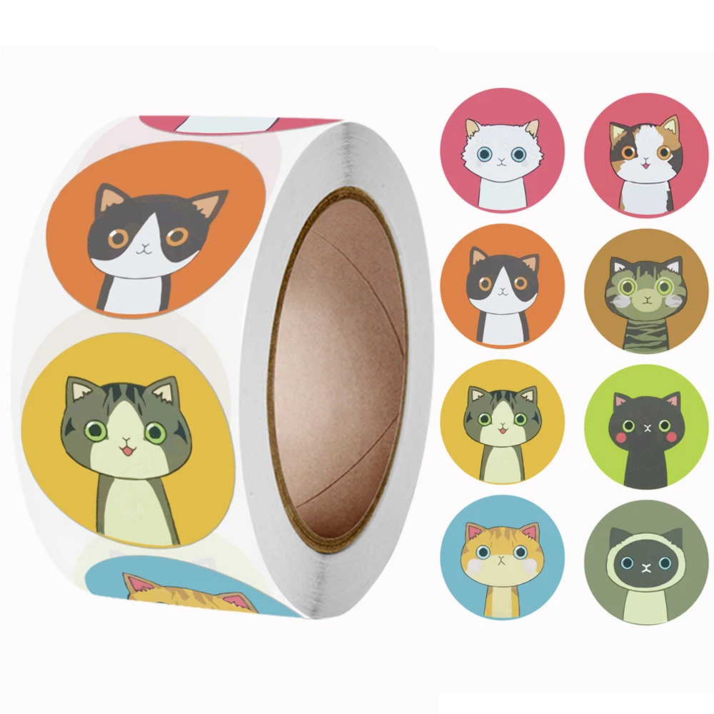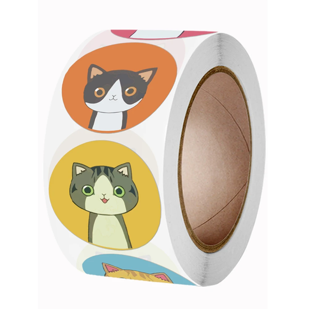 500 шт.рулон Симпатичная кошка наклеек s с 1 дюймовым круглым милым...