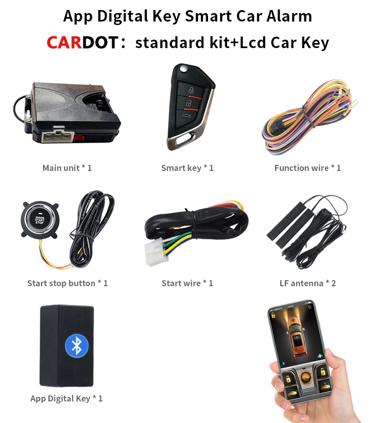 Цифровой смарт-ключ Cardot для зажигания, механический ключ, автомобильная электронная сигнализация безопасности, автомобильный смарт-телефон APP, дистанционный запуск и остановка