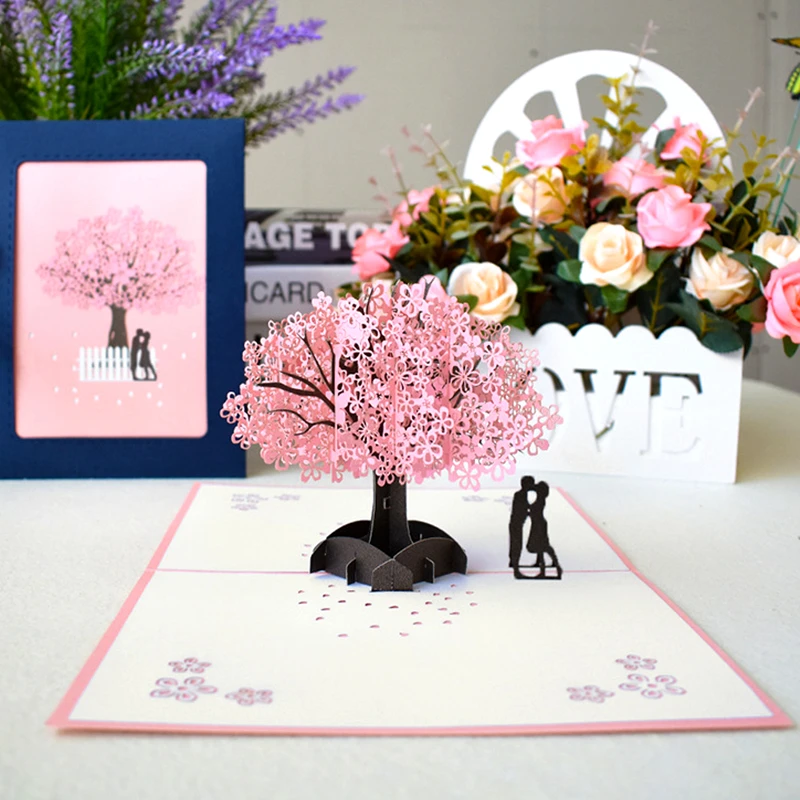 3D всплывающие карты романтическая открытка на день Святого Валентина Юбилейная Подарочная открытка Вишневое дерево Свадебные украшения приглашения Поздравительные Открытки