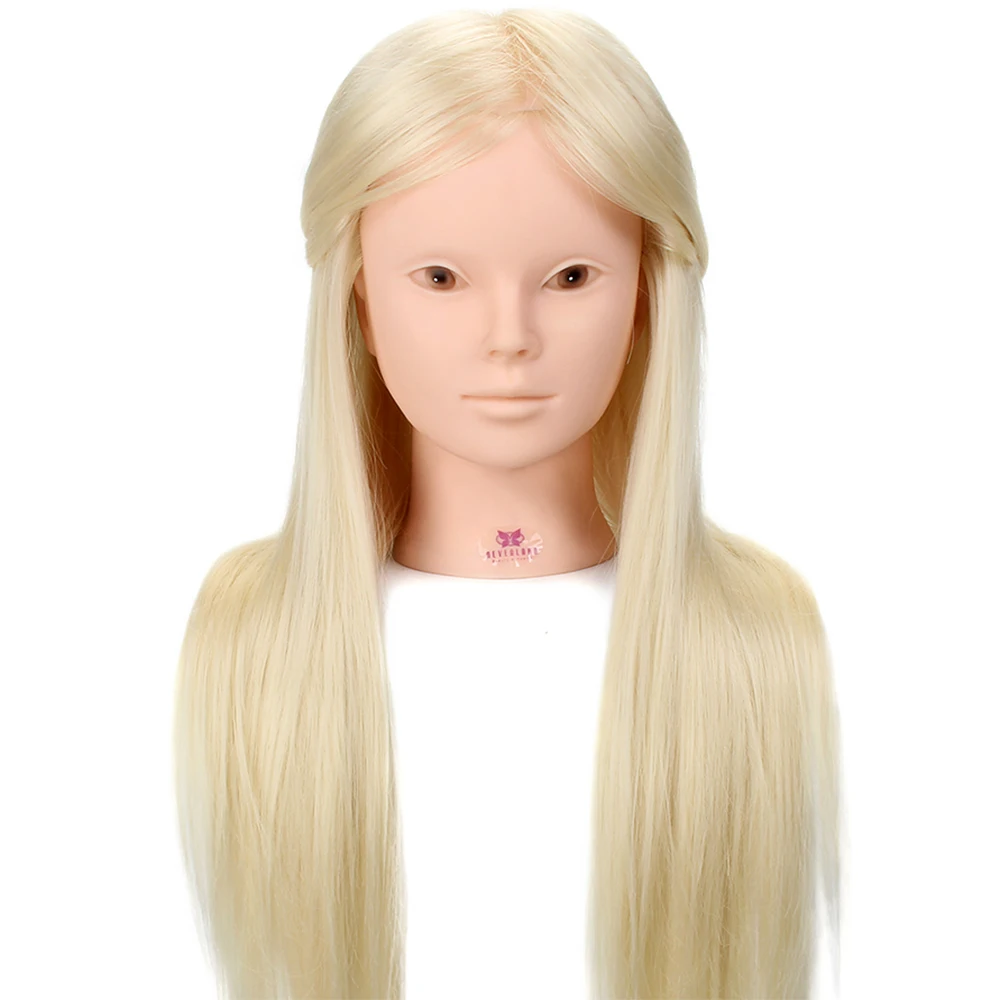 Манекен-голова из 50% натуральных человеческих волос, 24 дюйма, для макияжа, профессиональных тренировок, манекен, кукольные головки с белыми светлыми волосами