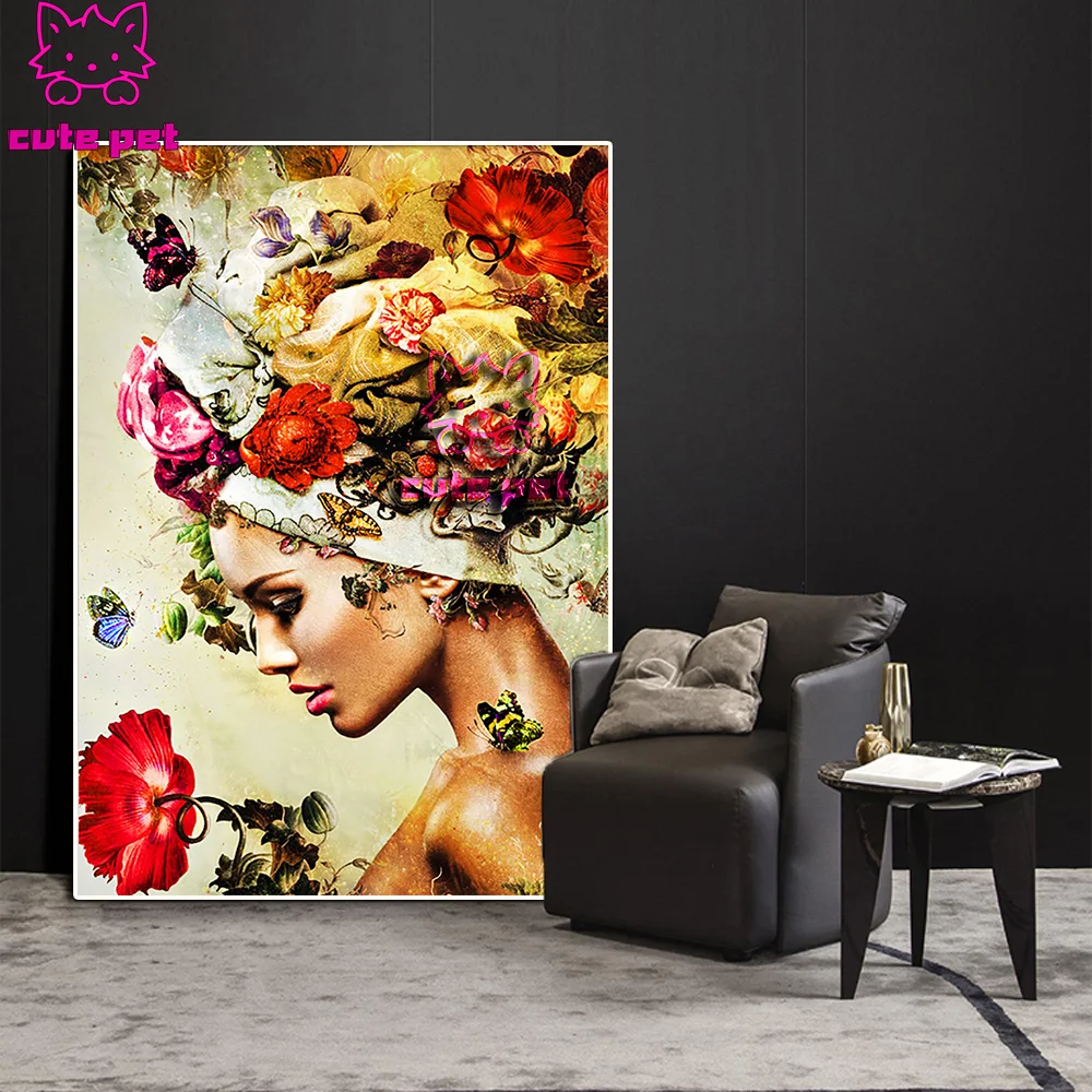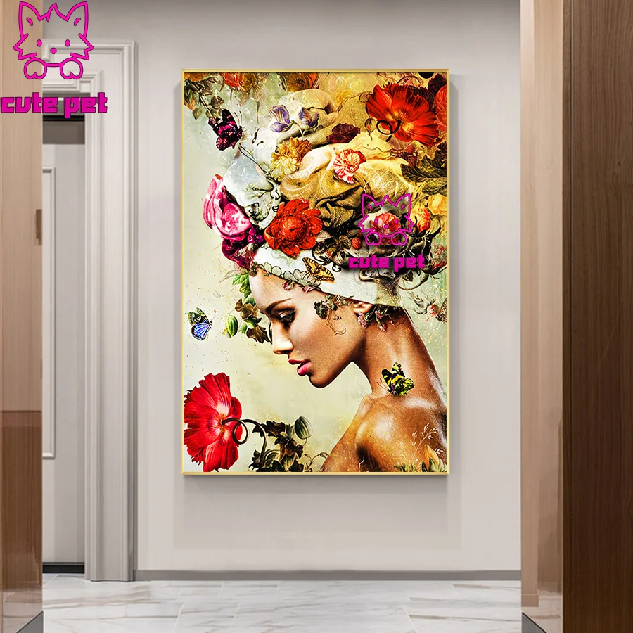 Искусство 5D сделай сам, алмазная живопись, цветок, женский головной убор, квадратная, круглая, стразы, бриллиант, Декор для дома