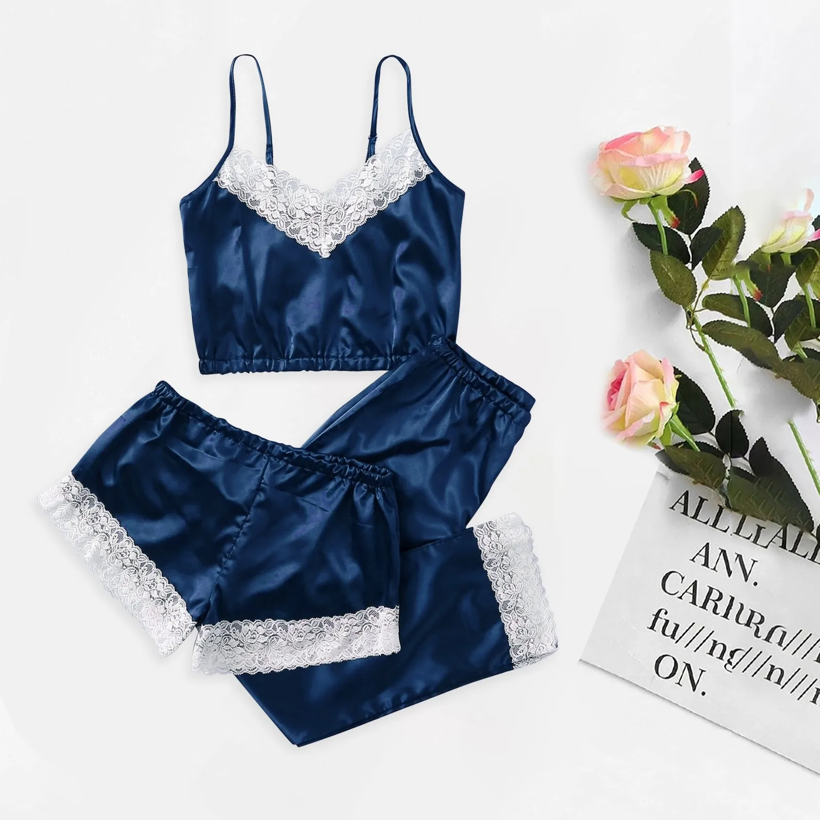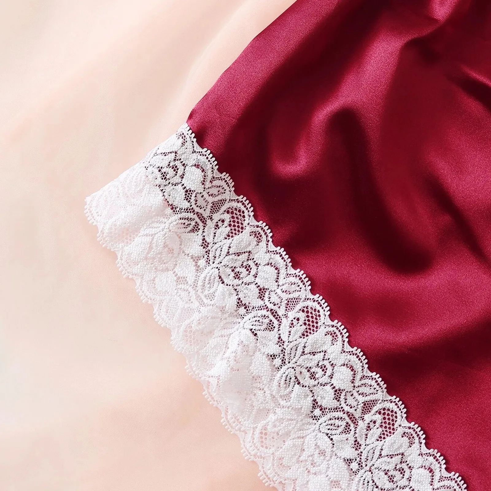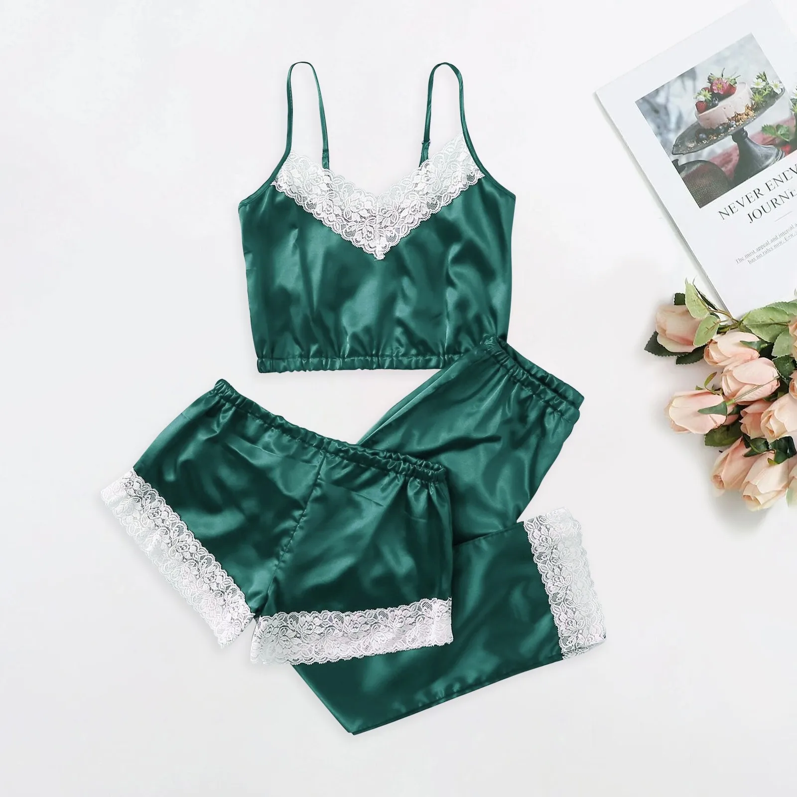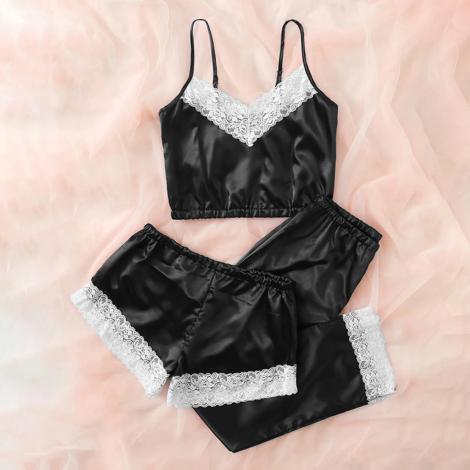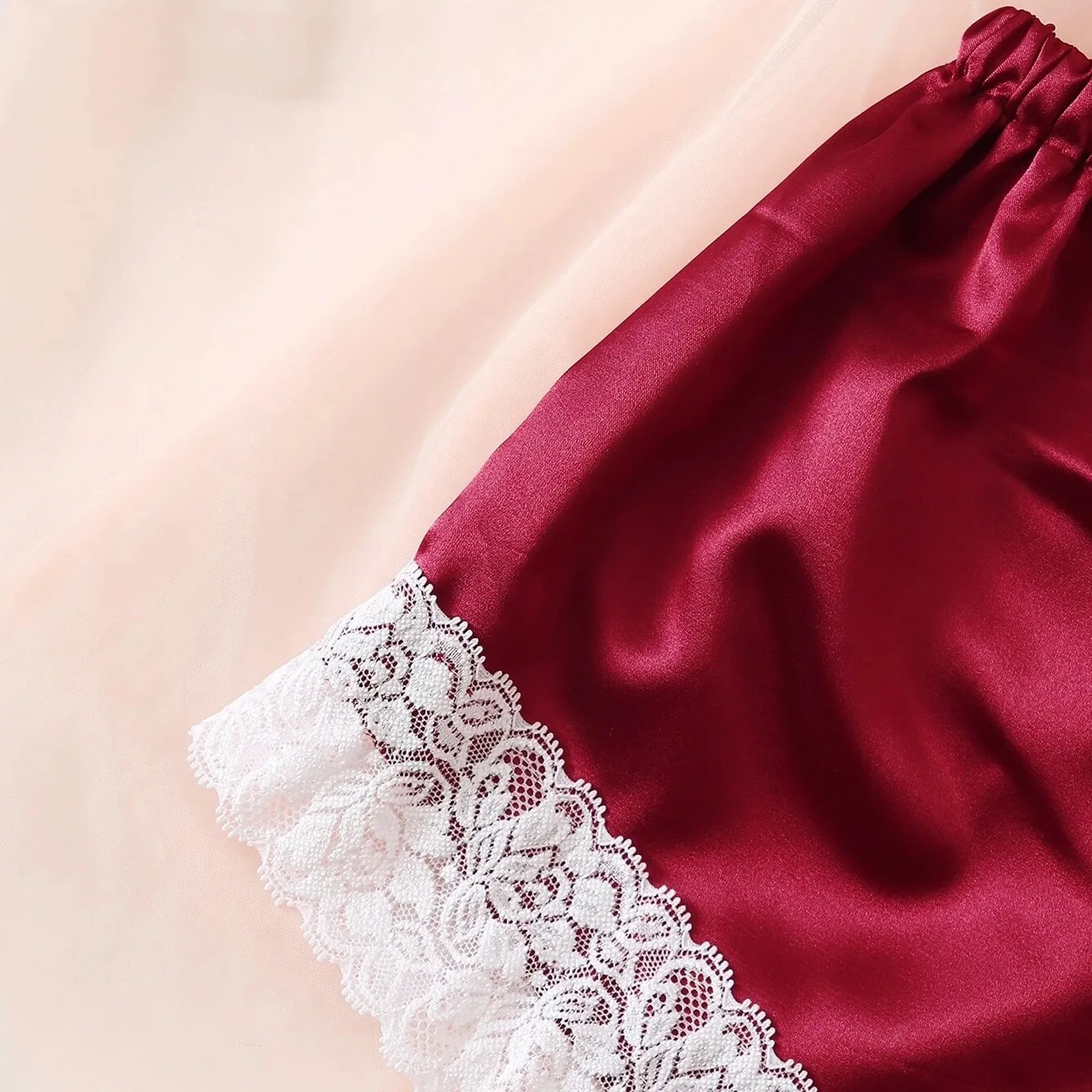 Ресничками комплект кружевной пижамы Для женщин с v-образным вырезом и кружевным рисунком камзол пижамы шорты с бантиком комплект Пижама сатин Mujer пижамные комплекты Pizama Damska