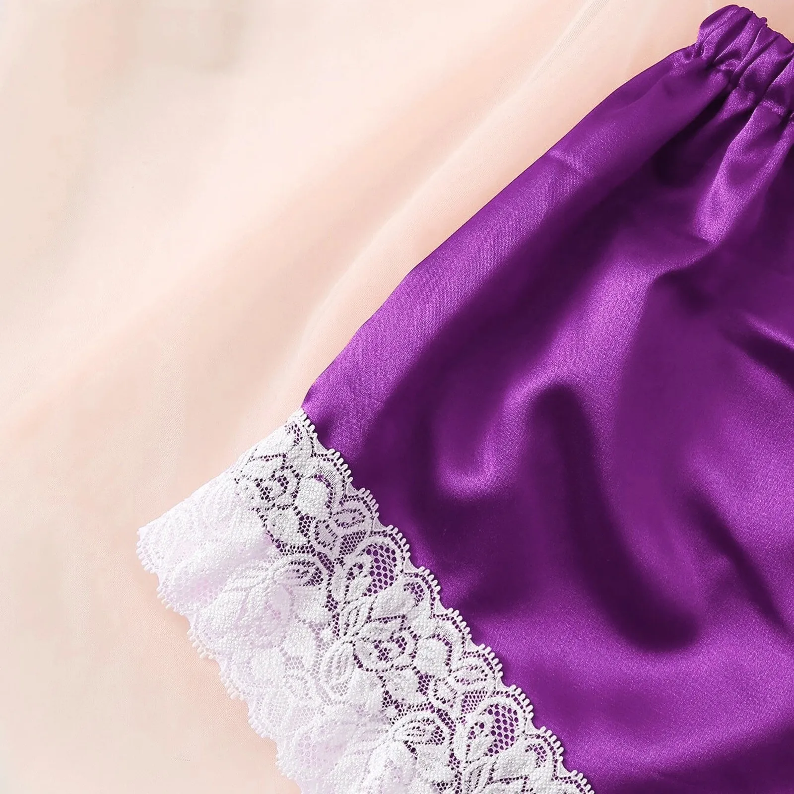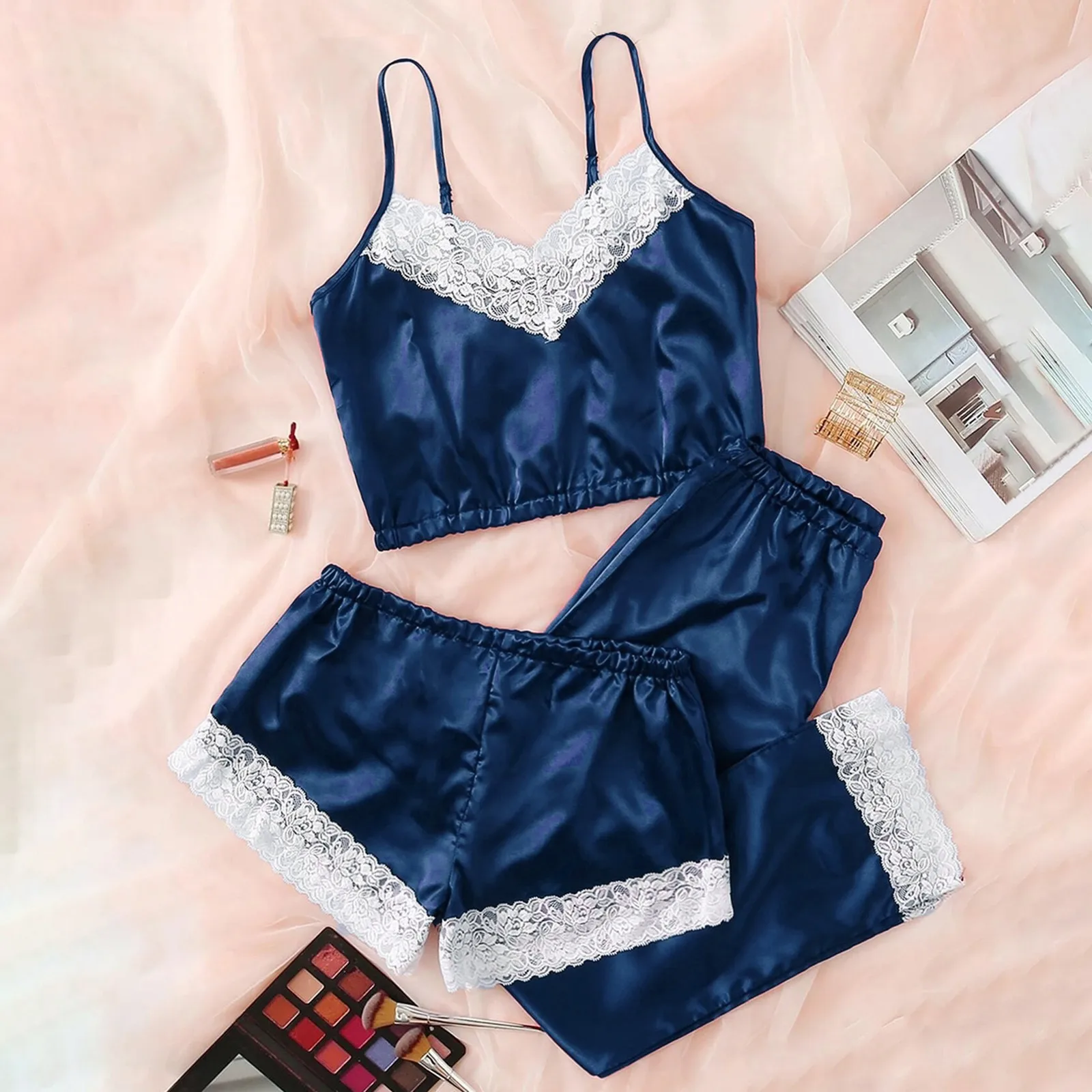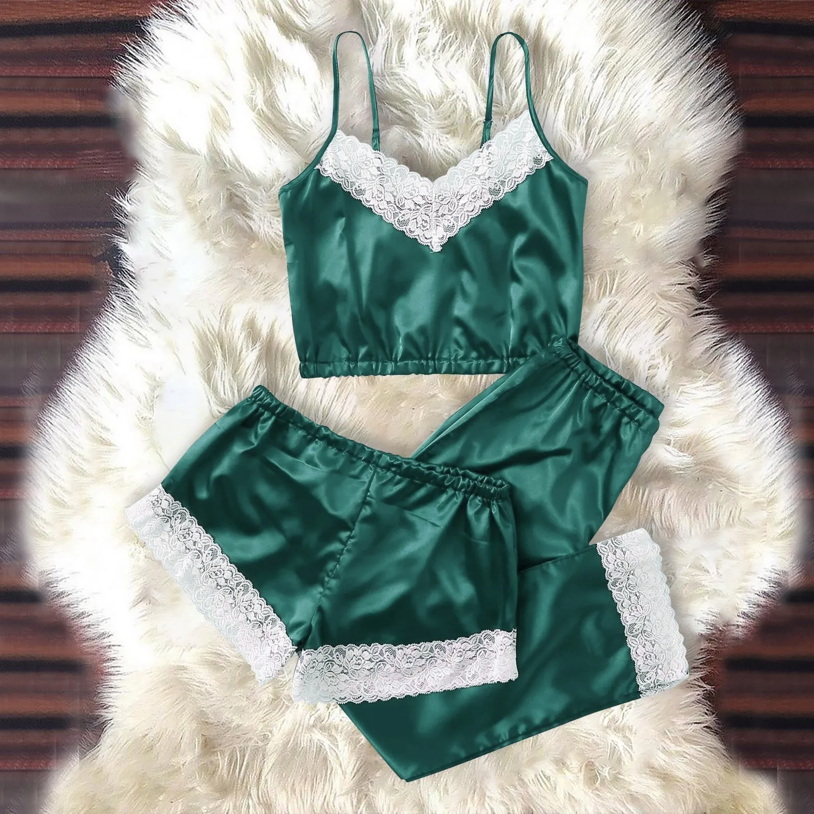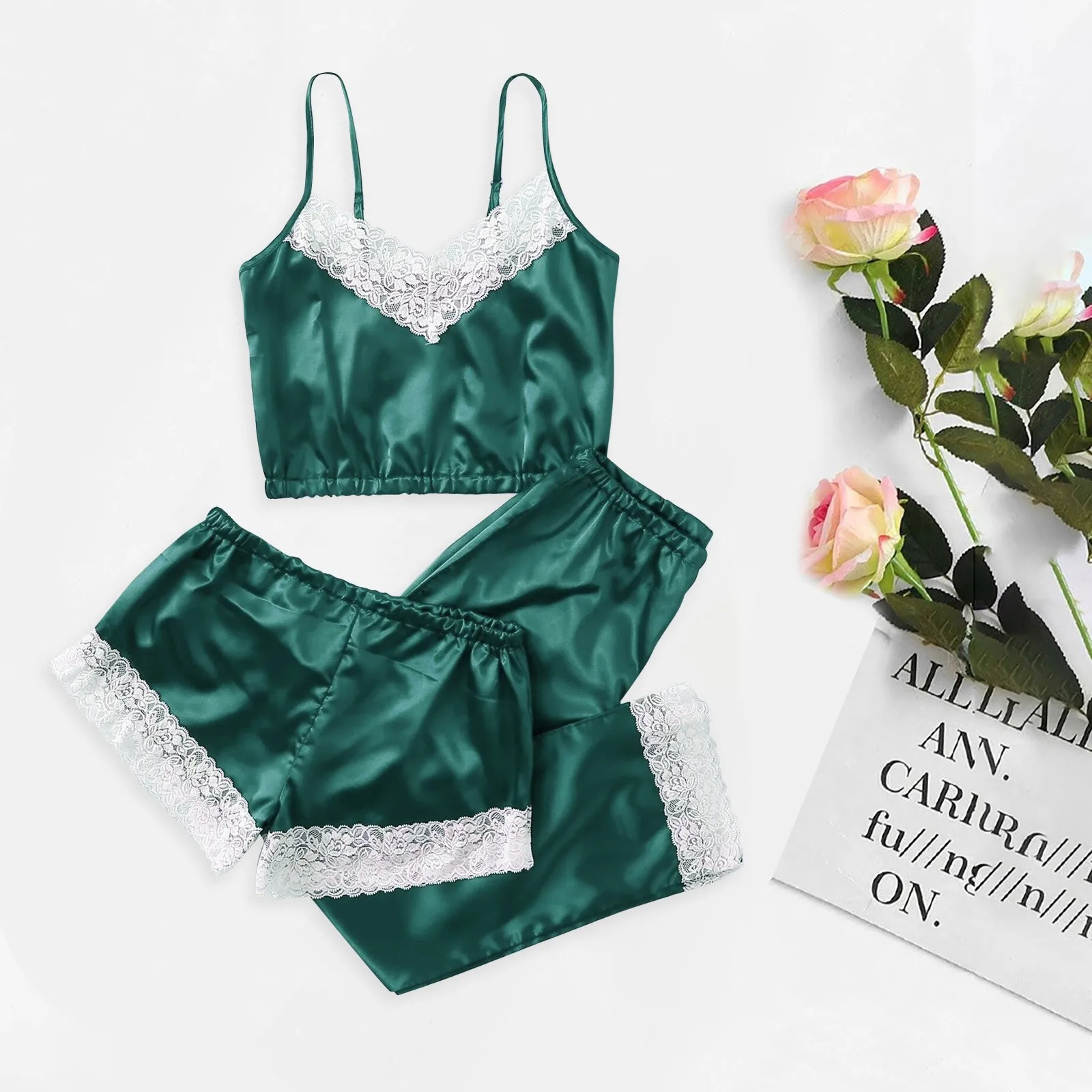Ресничками комплект кружевной пижамы Для женщин с v-образным вырезом и кружевным рисунком камзол пижамы шорты с бантиком комплект Пижама сатин Mujer пижамные комплекты Pizama Damska