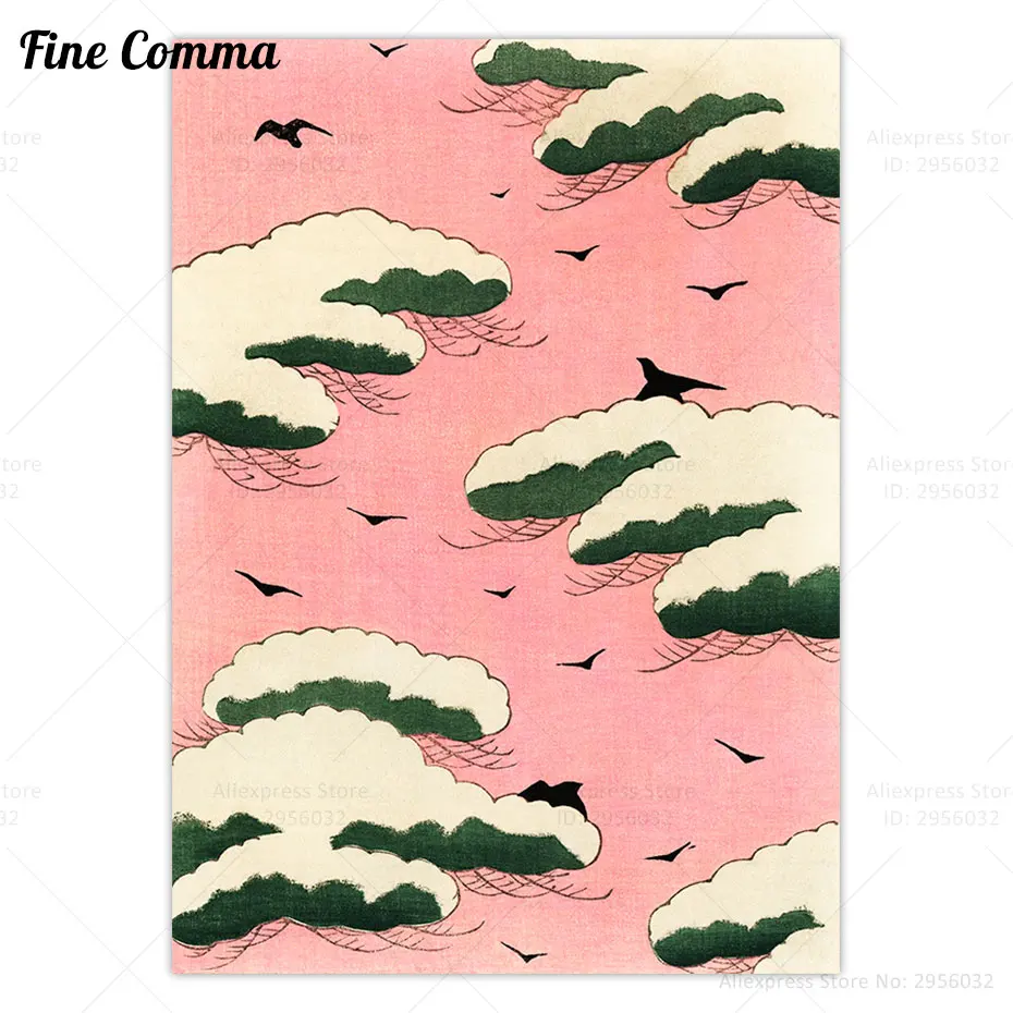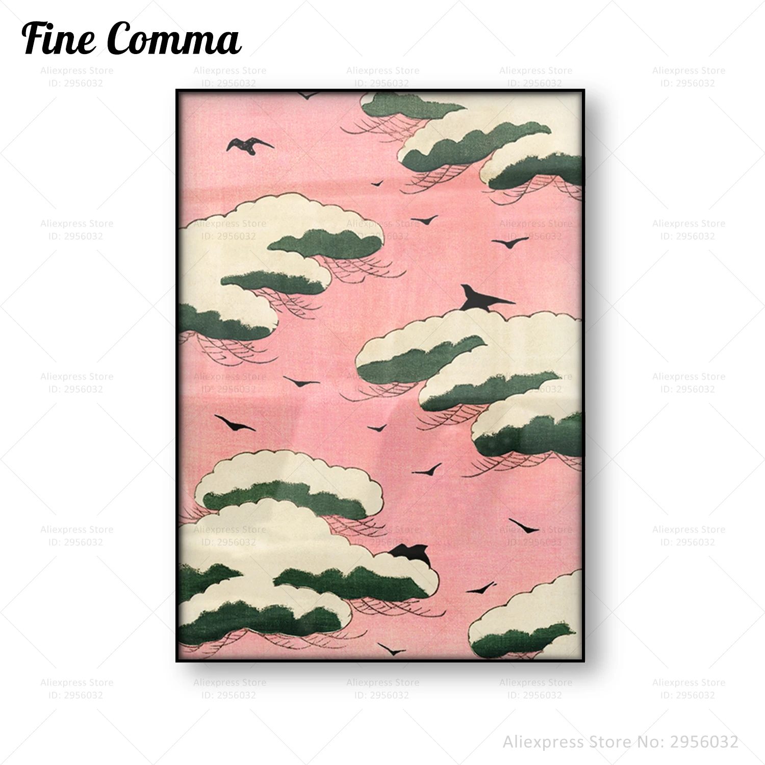 ВИНТАЖНЫЙ ПЛАКАТ с розовым небом, японское искусство, винтажная живопись, узор, китайская иллюстрация, окраска стен на холсте, Декор