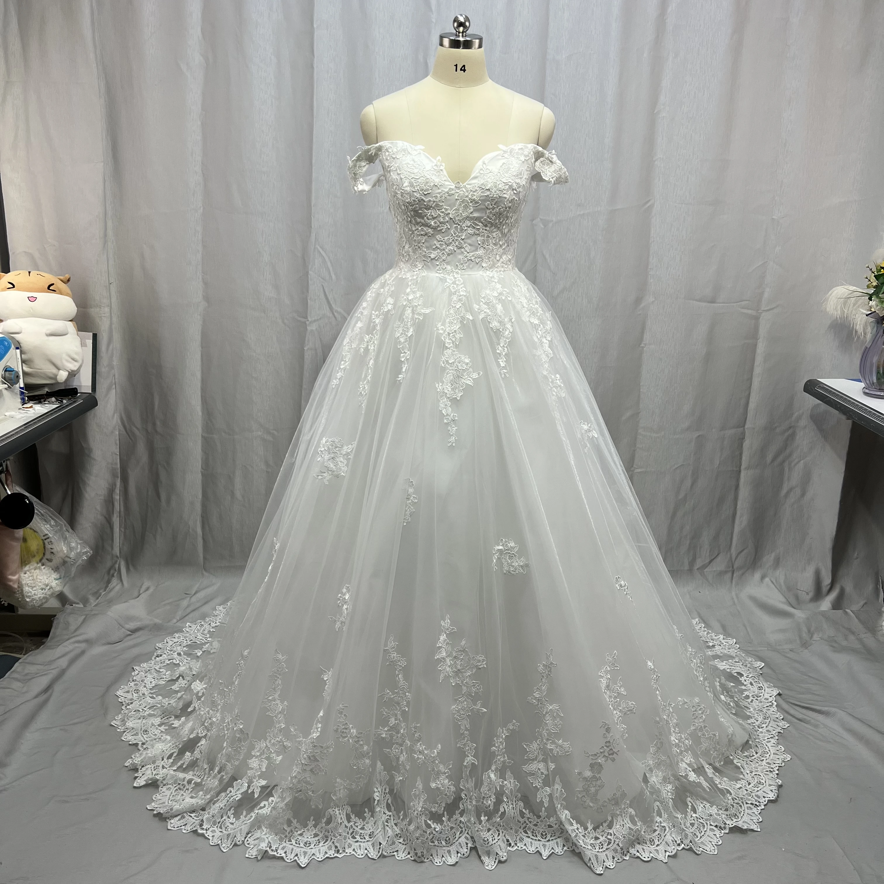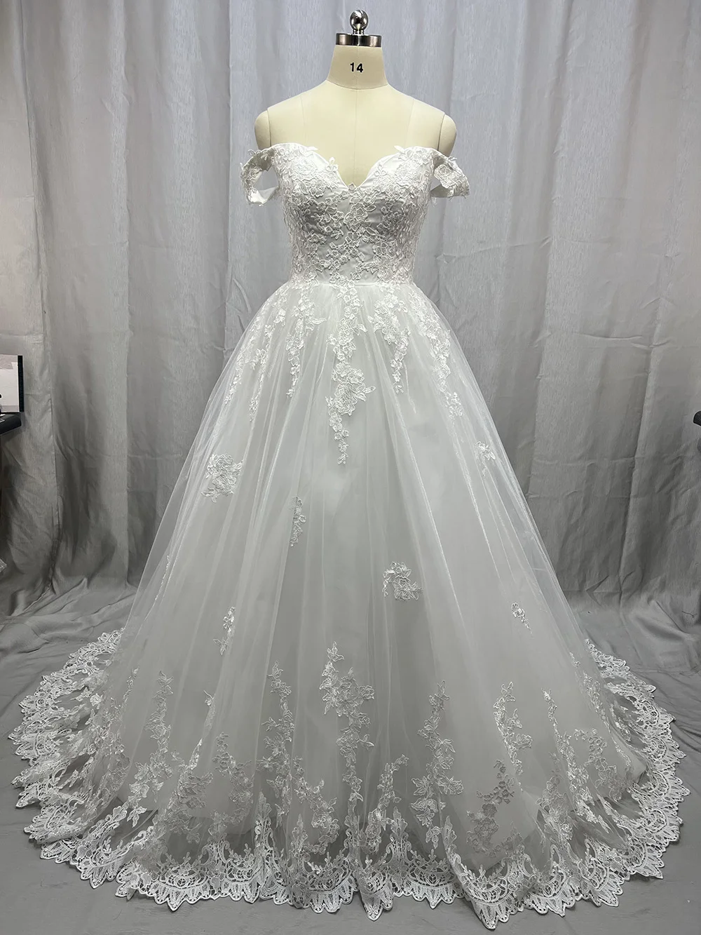 Элегантные Нежные белые свадебные платья с открытыми плечами, бальные платья, кружевное свадебное платье на пуговицах с аппликацией, свадебное платье, индивидуальный стиль