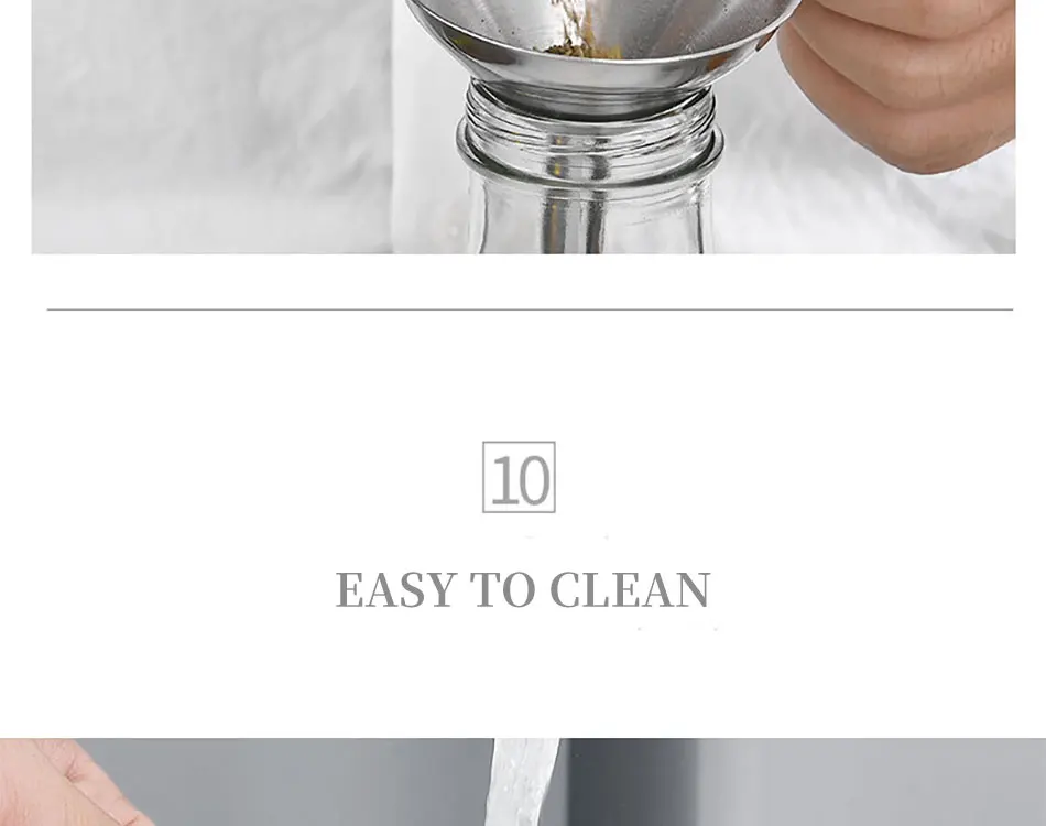 Ручка из нержавеющей стали удобно держать воронку над банкой, кастрюлей или кастрюлей, даже с легкостью обращаться с горячими жидкостями.