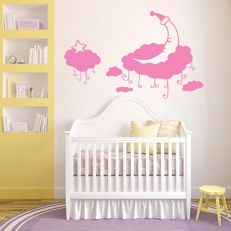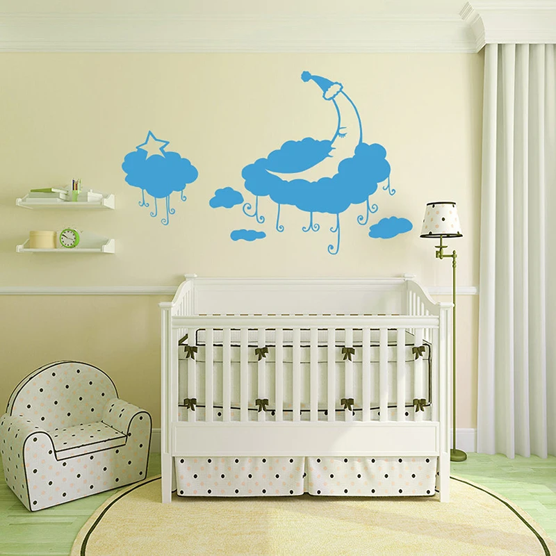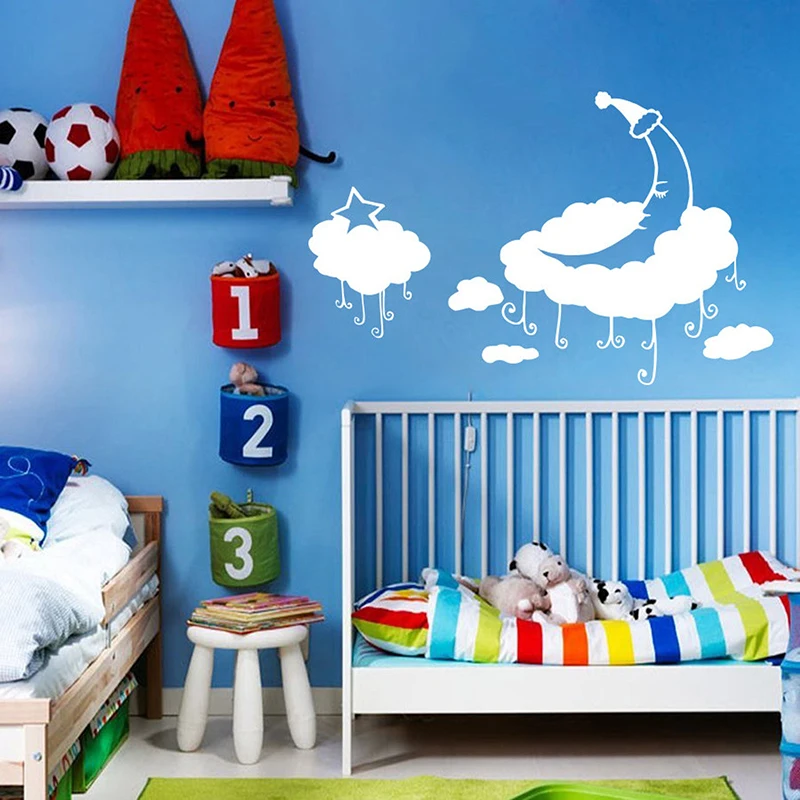 Облаками небом и звездами из винила ткани с героями мультфильма Луна стены Стикеры спокойной ночи для маленьких девочек Мальчик номер Спальня детские наклейки для стен интерьера домашний декор настенные фрески S208 icon star icon star icon star icon star icon star