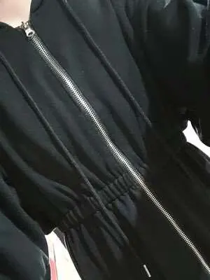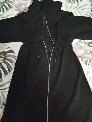 Свободное черное платье с капюшоном и высокой талией, с капюшоном, ...
