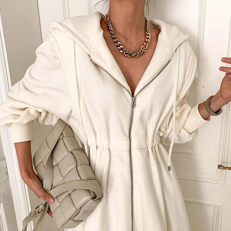 Белое шикарное платье на молнии, женское осеннее элегантное платье ...