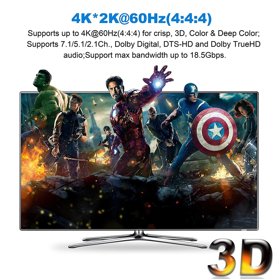 ·★ULTRA HD 4K визуальное удовольствие: Поддержка HDCP 2,2, HDMI2.0b,4K @ 60 Гц, RGB4:4:4,Full HD, UHD, HDTV, глубокий цвет до 36 бит, также совместим с 4K @ 30 Гц и 1080P. Максимальная пропускная способность 18,2 Гбит/с. (Обратите внимание: он не совместим с DVI)