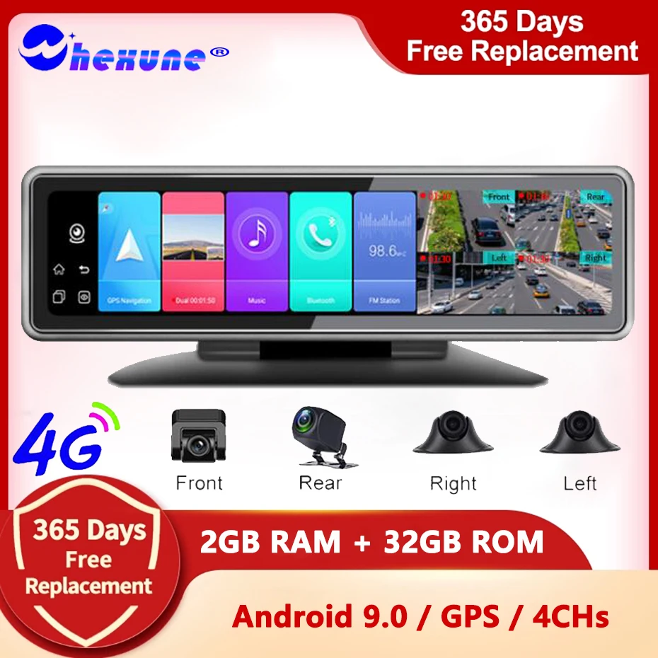 Автомобильный видеорегистратор WHEXUNE, автомобильная камера на зеркало заднего вида, 12 дюймов, 4 канала, 4G, Android 9,0, GPS, 1080P, Wi-Fi