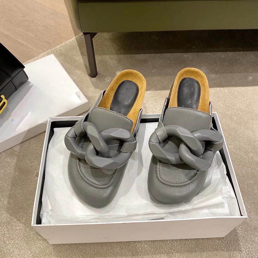 Женские туфли-лодочки с открытым носком и металлической цепочкой