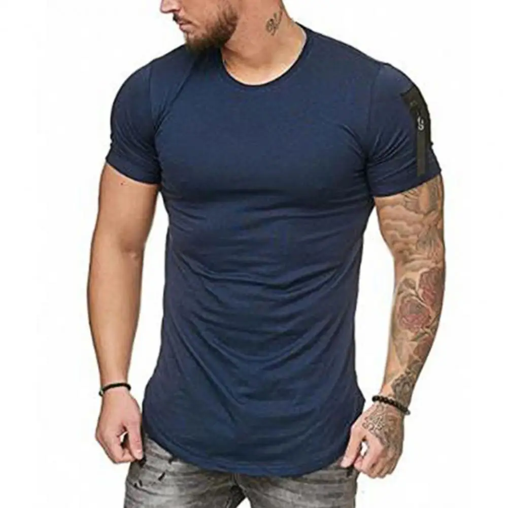 Футболка с короткими рукавами на молнии уличная одежда в стиле хип-хоп, летняя футболка мужская длинная изогнутые Тонкий Забавный футболка размера плюс M-3XL