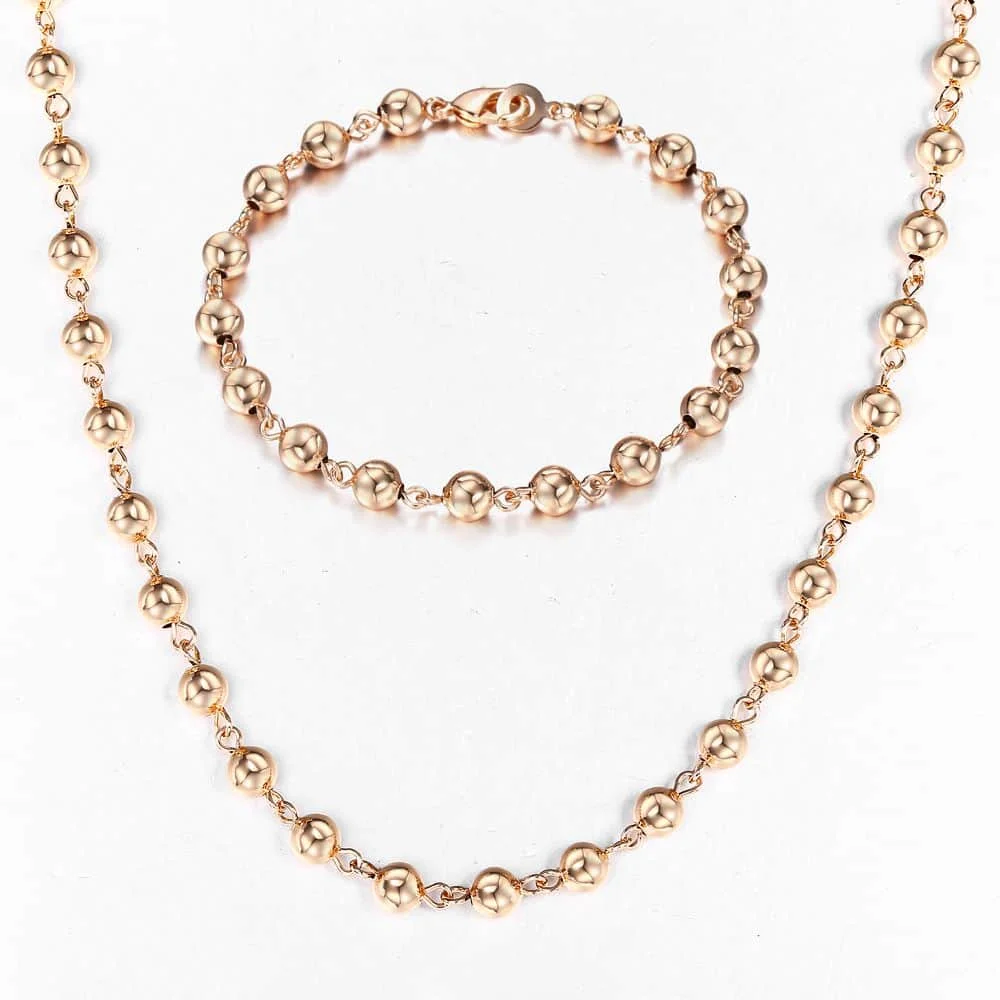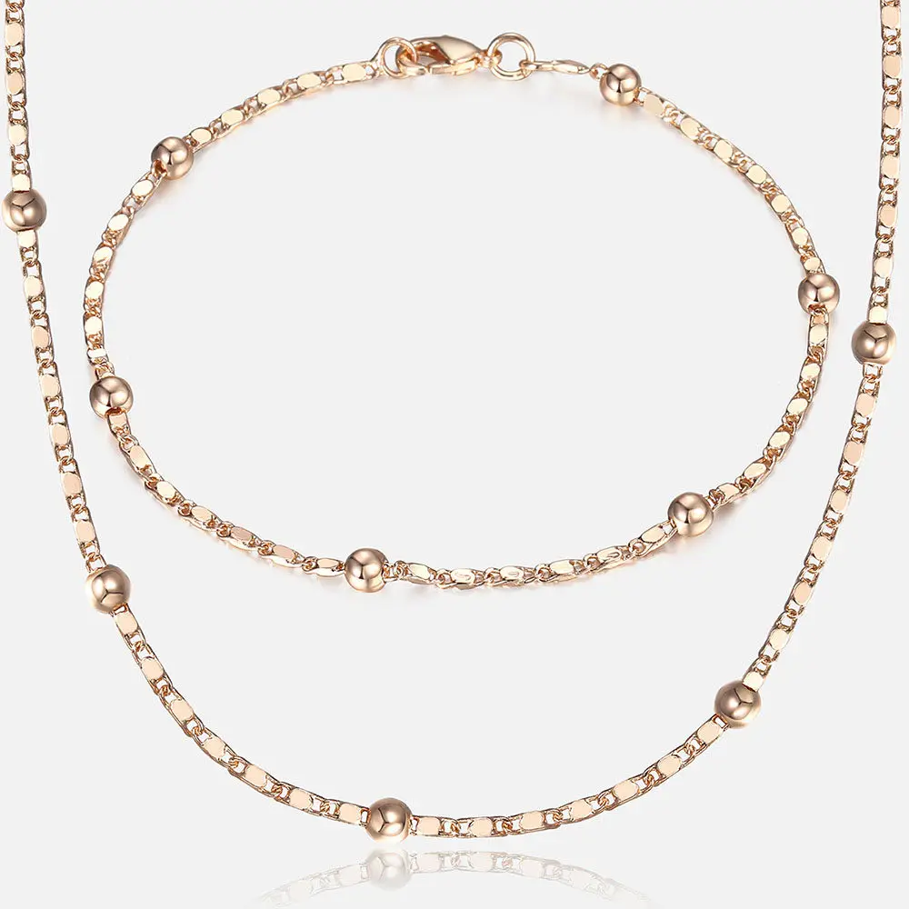Женский комплект из браслета и ожерелья из розового золота 585 набо...