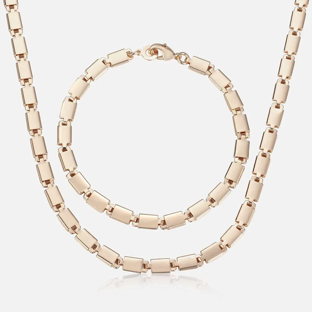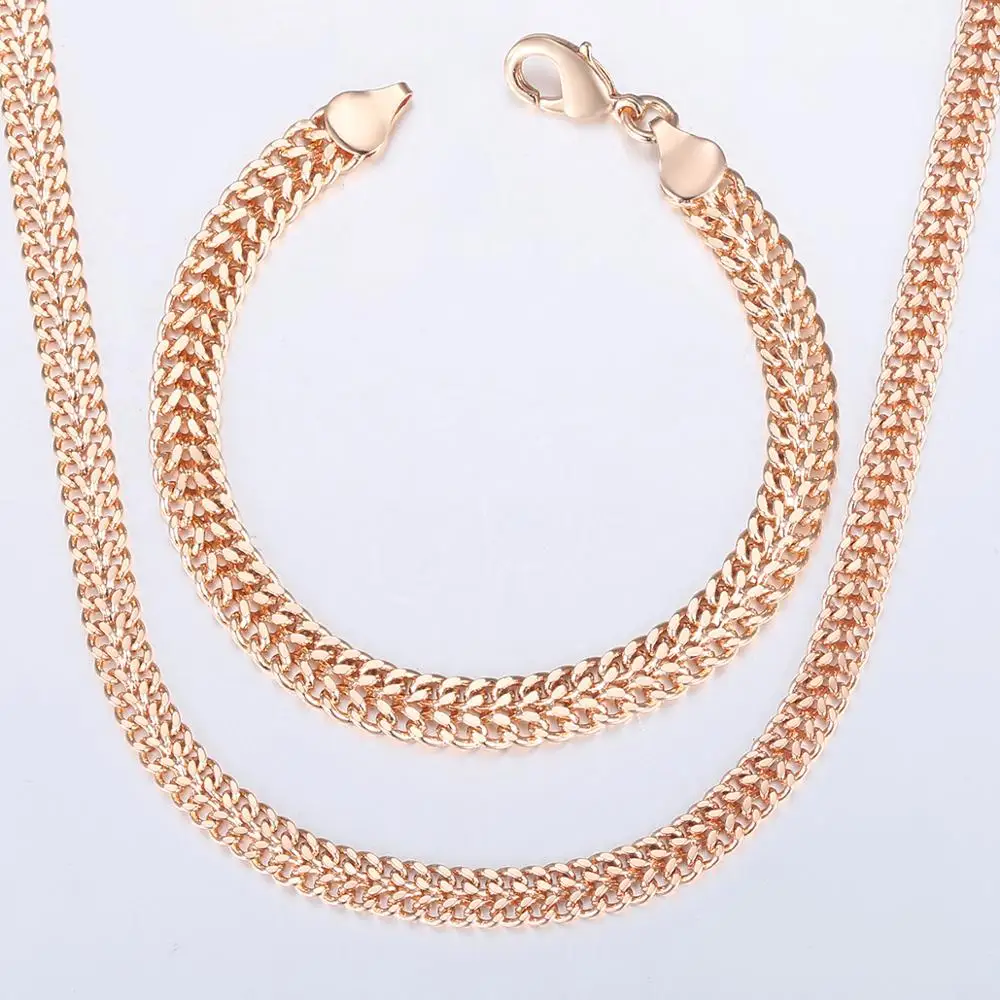 Для мужчин и женщин, комплект ювелирных изделий 585 цвета розового золота браслет, колье, набор с двойной кубинский плетения Бисмарк цепи 2018 оптовая продажа ювелирных изделий KCS04