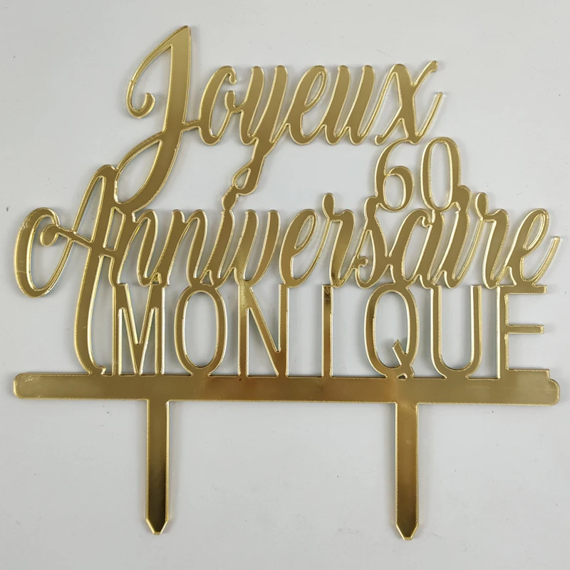 Персонализированные французский Топпер для торта С Днем Рождения изготовленный на заказ Joyeux Anniversaire + имя возраст для День рождения торт украшения фигурки жениха и невесты;