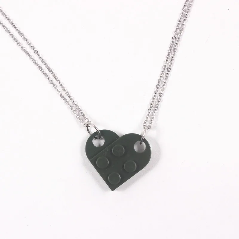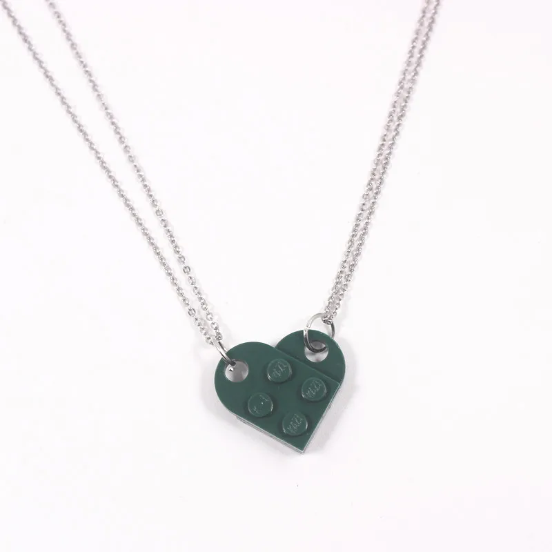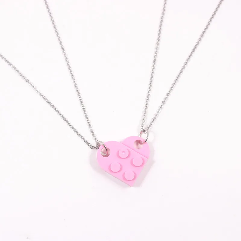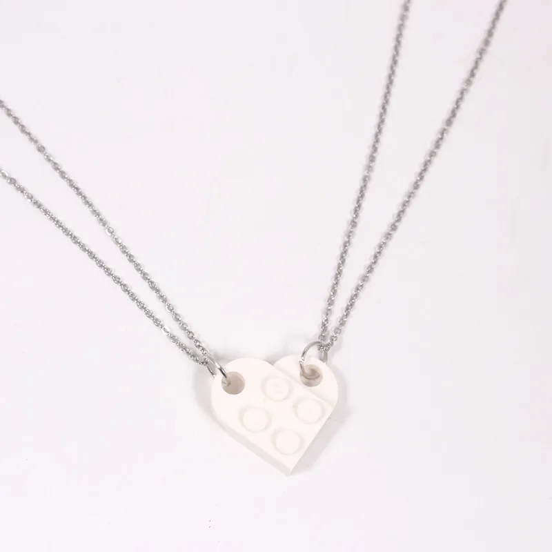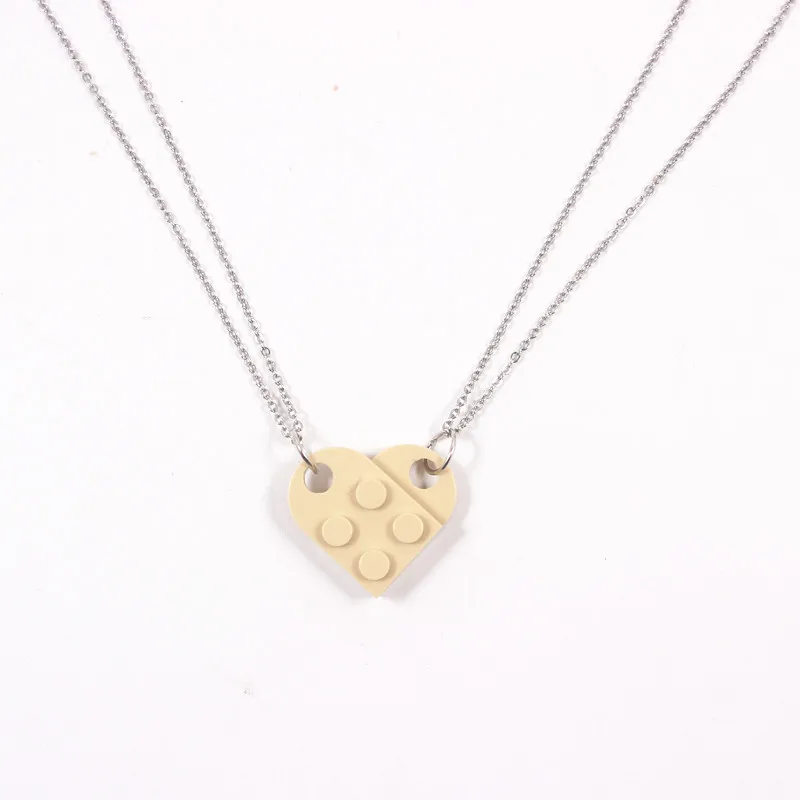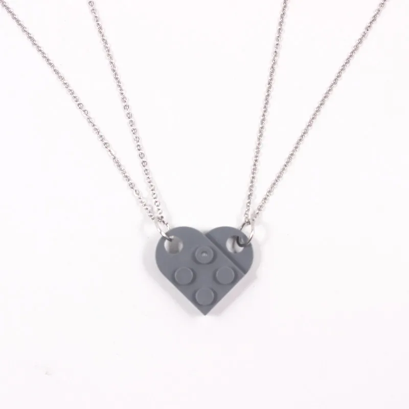 Цепочка Из Нержавеющей Стали для пар, кирпич, сердце, Кулон, Ожерелье для дружбы, 2 шт., ювелирные изделия, изготовленные с элементами Lego
