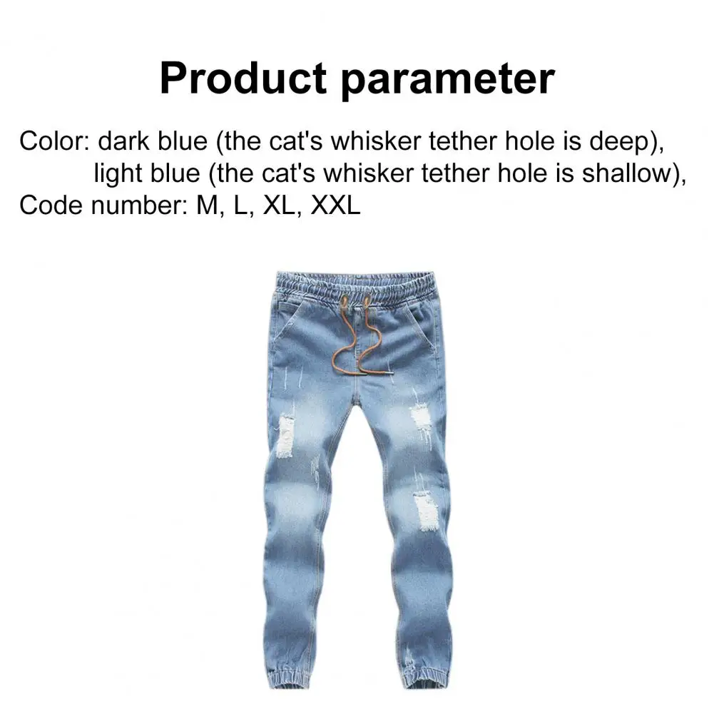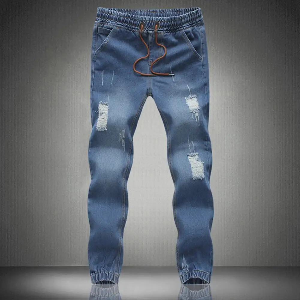 Мужские Брюки с карманами, длинные облегающие джинсовые брюки, модные мужские рваные джинсы-карандаш, цвет голубой, 2021