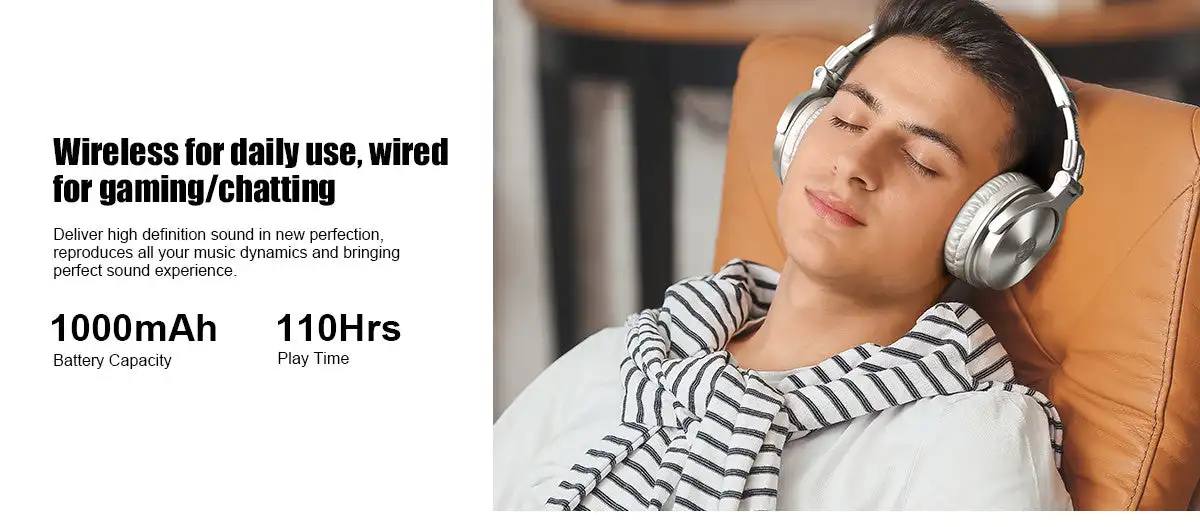 【Естественное говорящее звучание аудиосигнала 】 вы получите преимущества усовершенствованных наушников Oneodio bluetooth, благодаря усовершенствованной технологии беснаправленного шумоподавления CVC 8,0 и быстрой стабильной передаче Bluetooth V5.2.【Двойной режим и никогда не выключается 】 беспроводной режим: встроенный аккумулятор емкостью 1000 мА · ч обеспечивает до 110 часов воспроизведения за одну зарядку. Проводной режим: Вы также можете использовать его в качестве проводного наушников с предоставленным аудиокабелем, поэтому наушники никогда не будут отключены.【Профессиональное качество звука 】 Наслаждайтесь превосходным сбалансированным звуком и высоким комфортом. Большой драйвер 50 мм в сочетании с неодимовыми магнитами обеспечивает стереозвук, мощные басы, четкий вокал и четкие высокие тона формируют идеальный сбалансированный звук.【Максимальный комфорт и свободное пространство 】 эргономичная память обеспечивает длительный комфорт. Складная повязка на голову предназначена не только для экономии рабочего места, но и для переноски в прилагаемой сумке для переноски.【Работает с iPad, iPod, iPhone, Android и многими другими аудиоустройствами. 】 высокое качество звука, высокая прочность и максимальный комфорт. Это наушники, которые вы искали.
