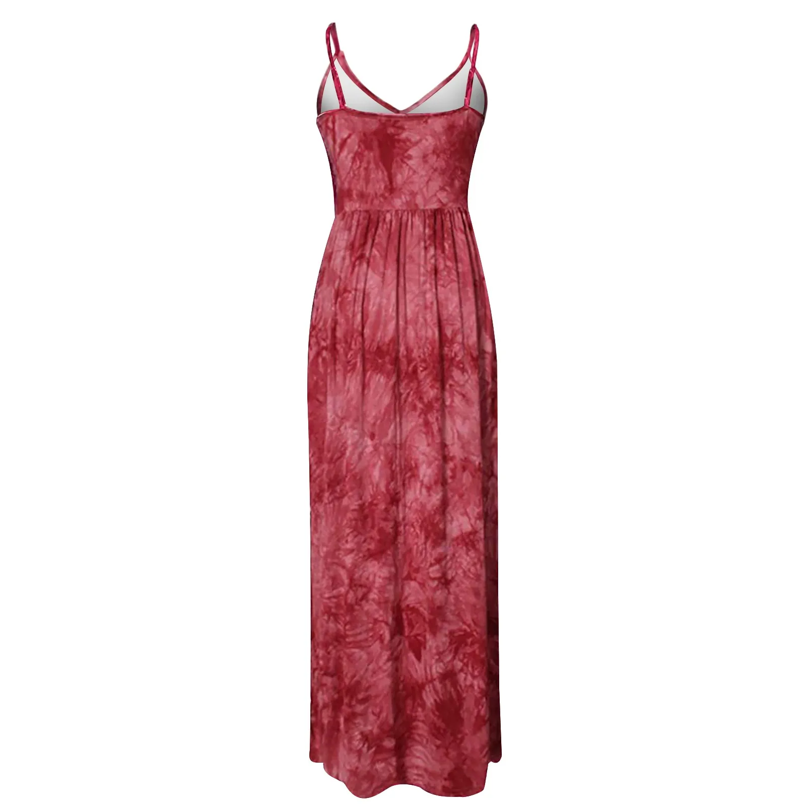 Женское летнее повседневное свободное платье с регулируемыми бретельками, длинное платье с карманами