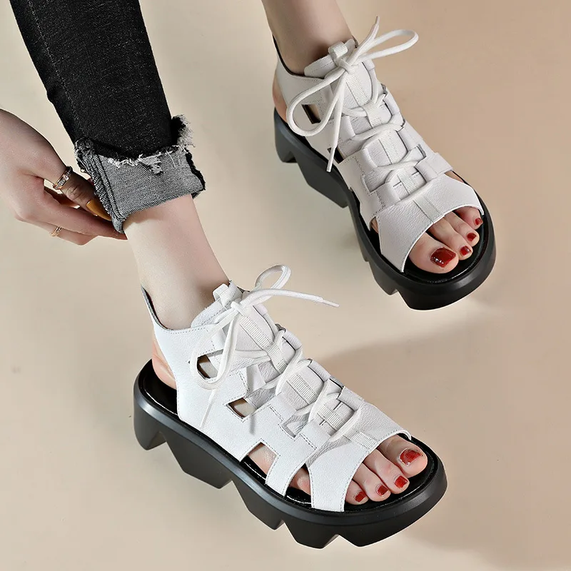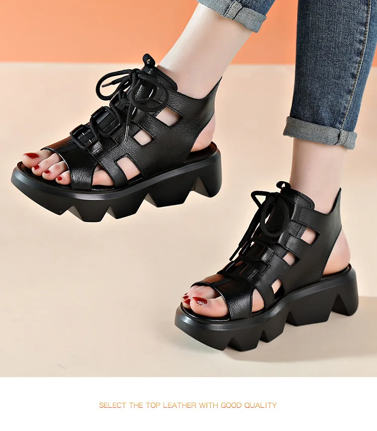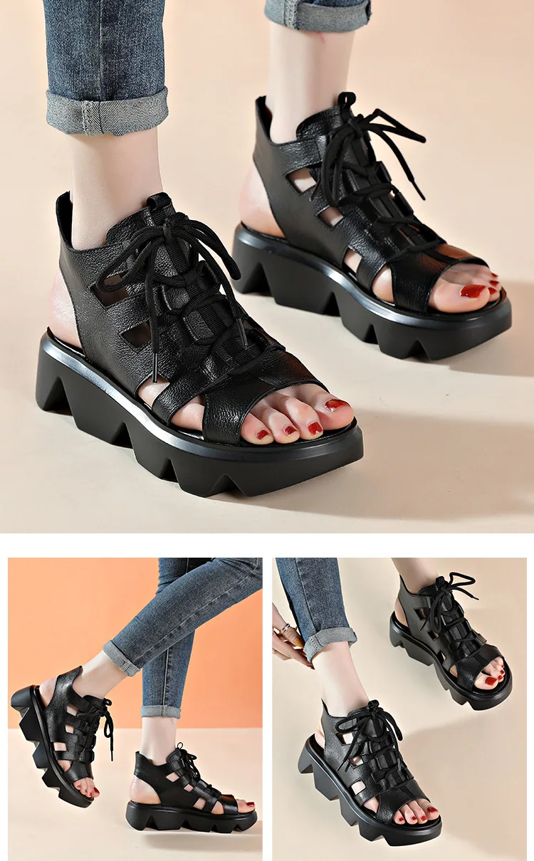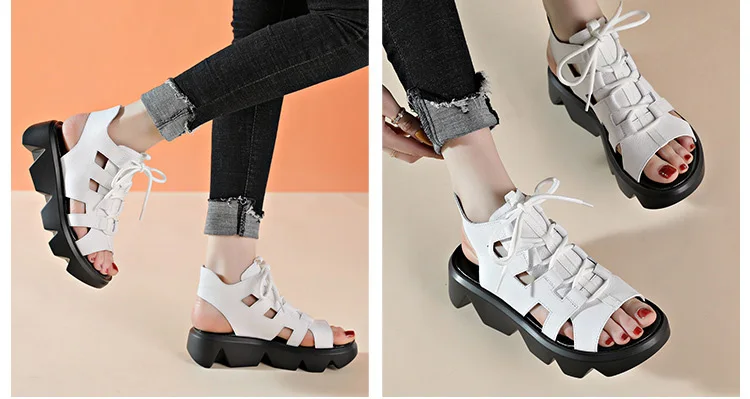 Высокое качество; Босоножки на платформе; Обувь для женщин на не сужающемся книзу массивном натуральная кожа 5,5 см туфли на высоком каблуке с открытым носком Модные сандалии-гладиаторы обувь для женщин; Резиновые сапоги на шнуровке