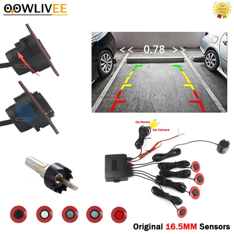 OOWLIVEE парктроник 16,5 мм плоский датчик парковки автомобиля шаговый динамик система детектора автомобиля детектор сигнализации видео паркмастер Jalousie