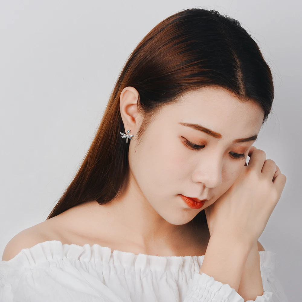 Серьги в виде стрекозы с инкрустированным цирконием, креативная личность, корейская мода, ювелирные изделия для женщин, насекомое, серьги-гвоздики, высокое качество, трендовый подарок