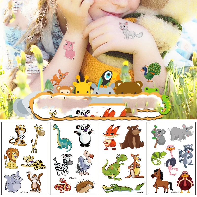 10 видов мультяшных татуировок с животными, милые детские для прогу...