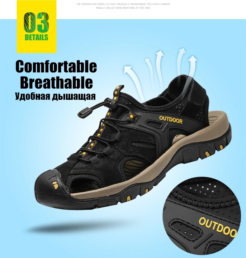 Сандалии мужские из натуральной кожи, спортивная обувь на плоской подошве, для воды, пляжа, работы, походов, летние, большие размеры