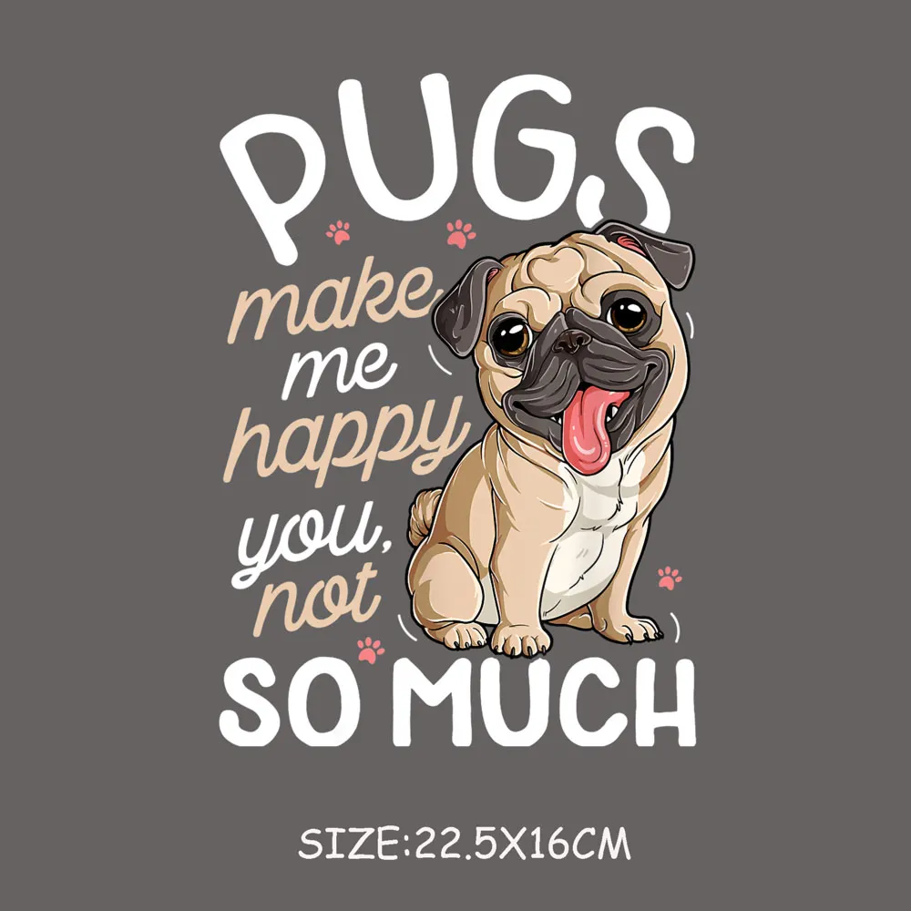 Термонаклейки для одежды Happy Pugs термо-Стикеры для одежды, виниловые, с рисунком