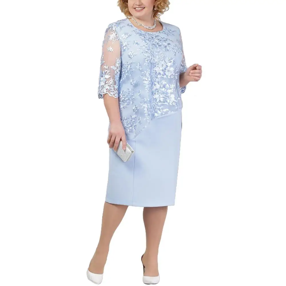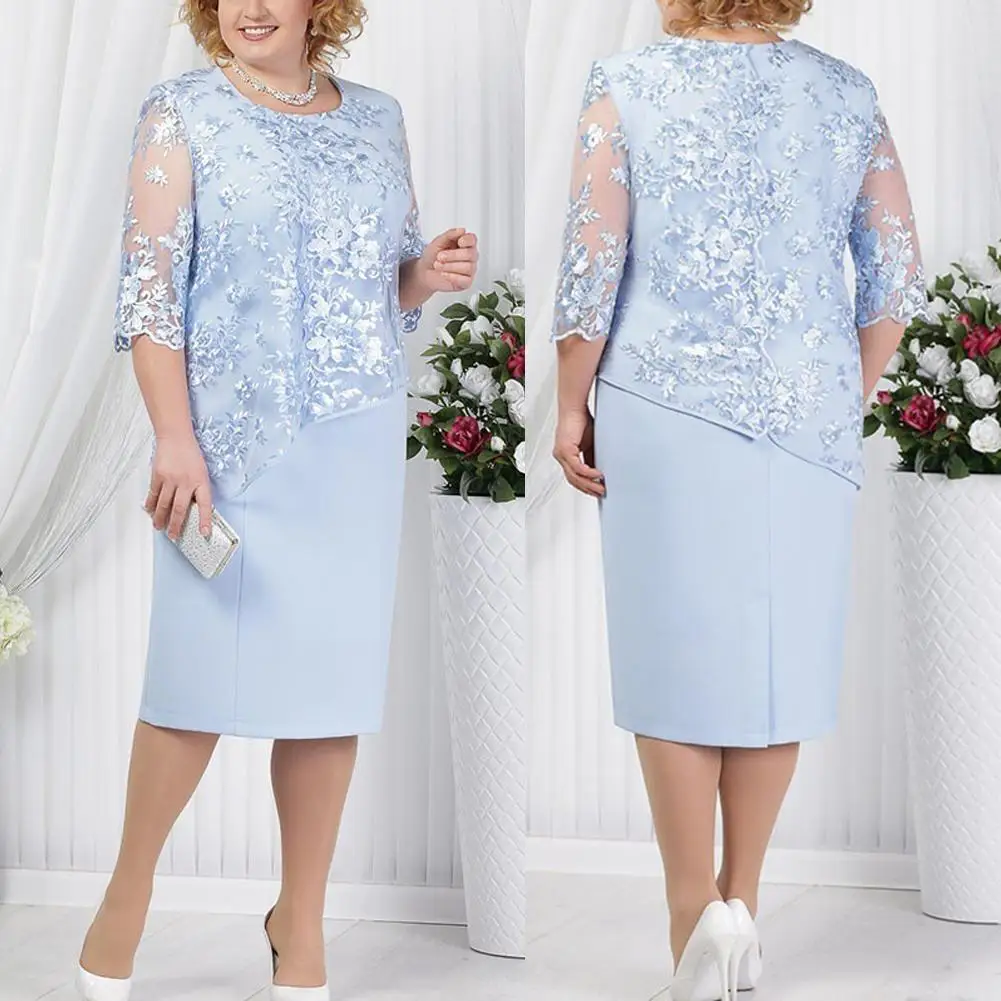 Размера плюс 2021 летнее женское элегантное прозрачное Сетчатое платье средней длины с рукавами до локтя и цветочной вышивкой, многослойное кружевное вечервечерние 5XL