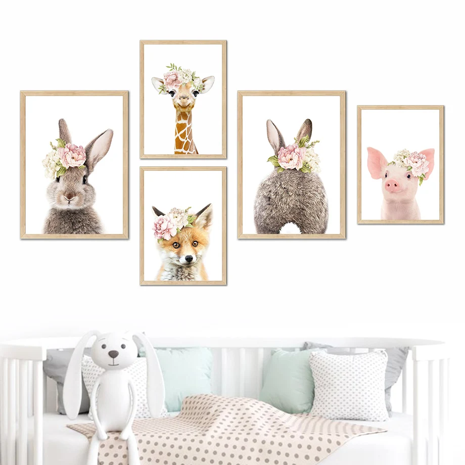 Кролик олень лиса белка енот животные детские постеры и принты в ск...
