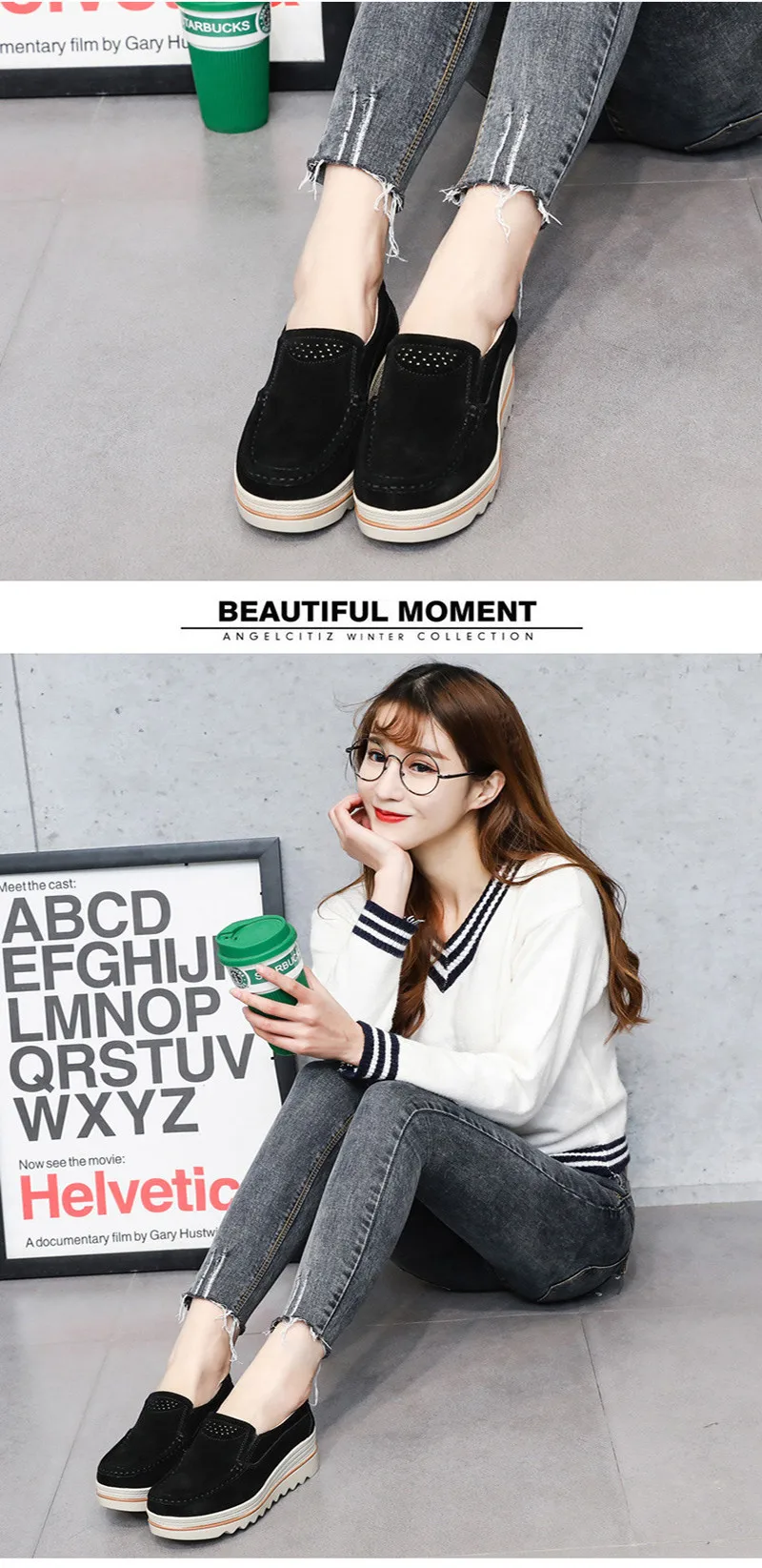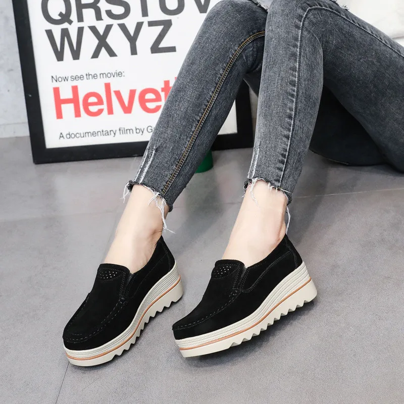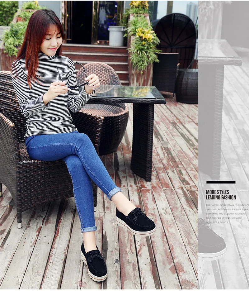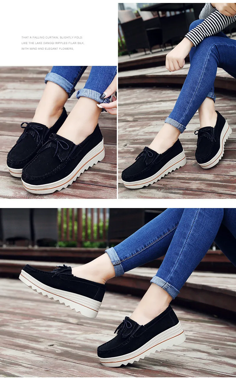 Женские замшевые лоферы на платформе HOVINGE, черные Повседневные слипоны на плоской подошве, лоферы на весну 2019