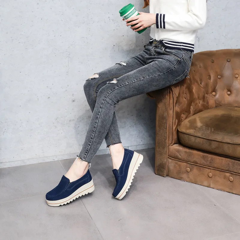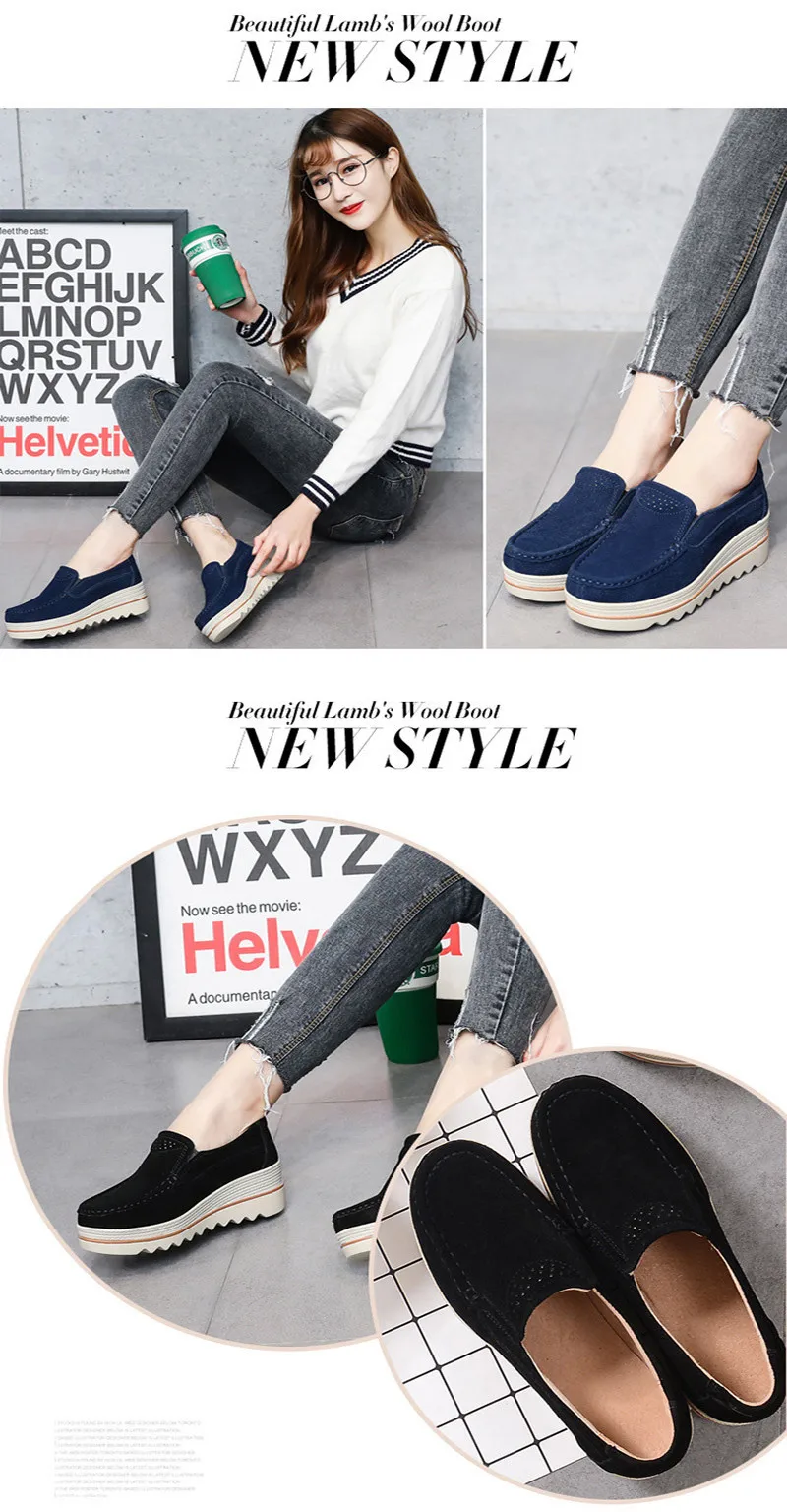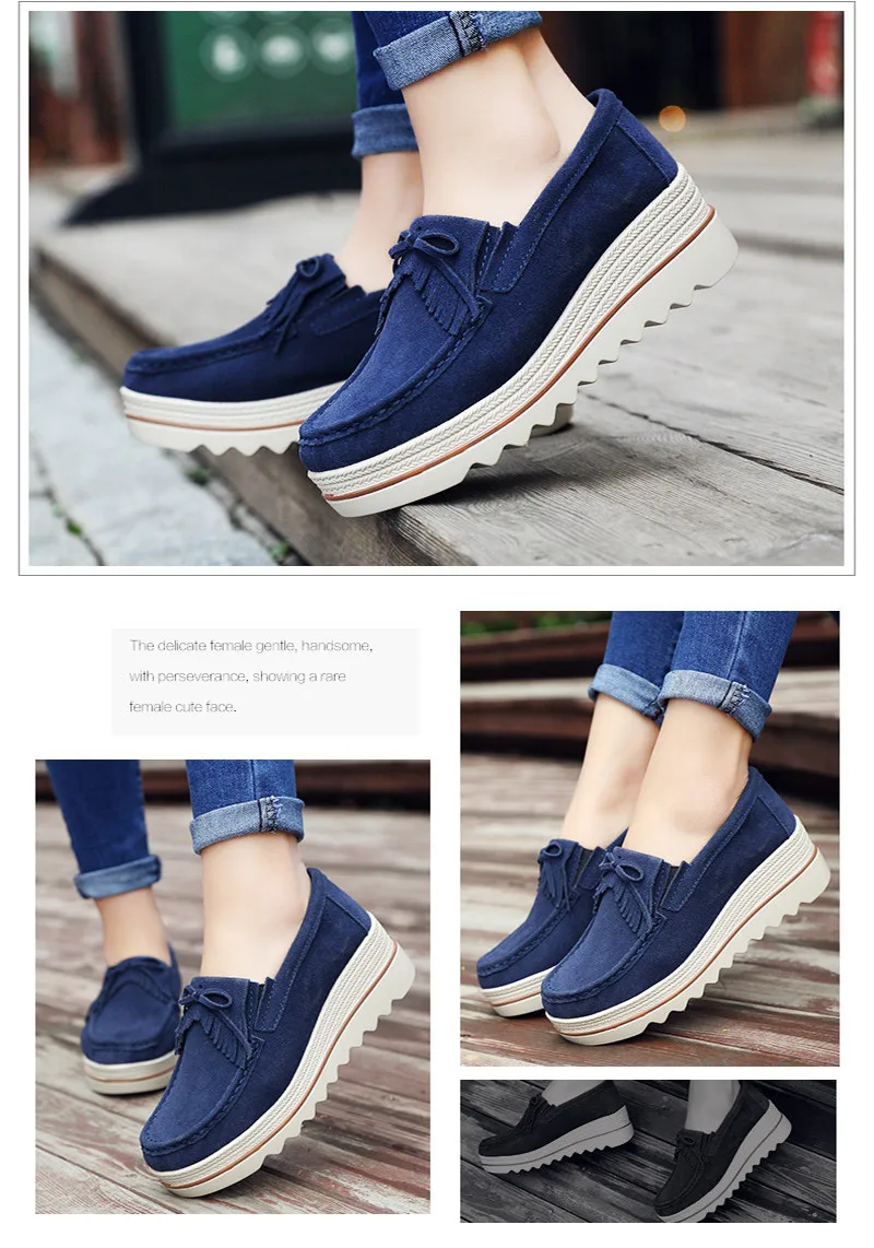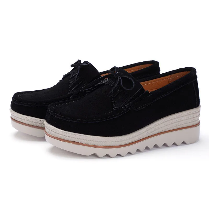 Женские замшевые лоферы на платформе HOVINGE, черные Повседневные слипоны на плоской подошве, лоферы на весну 2019