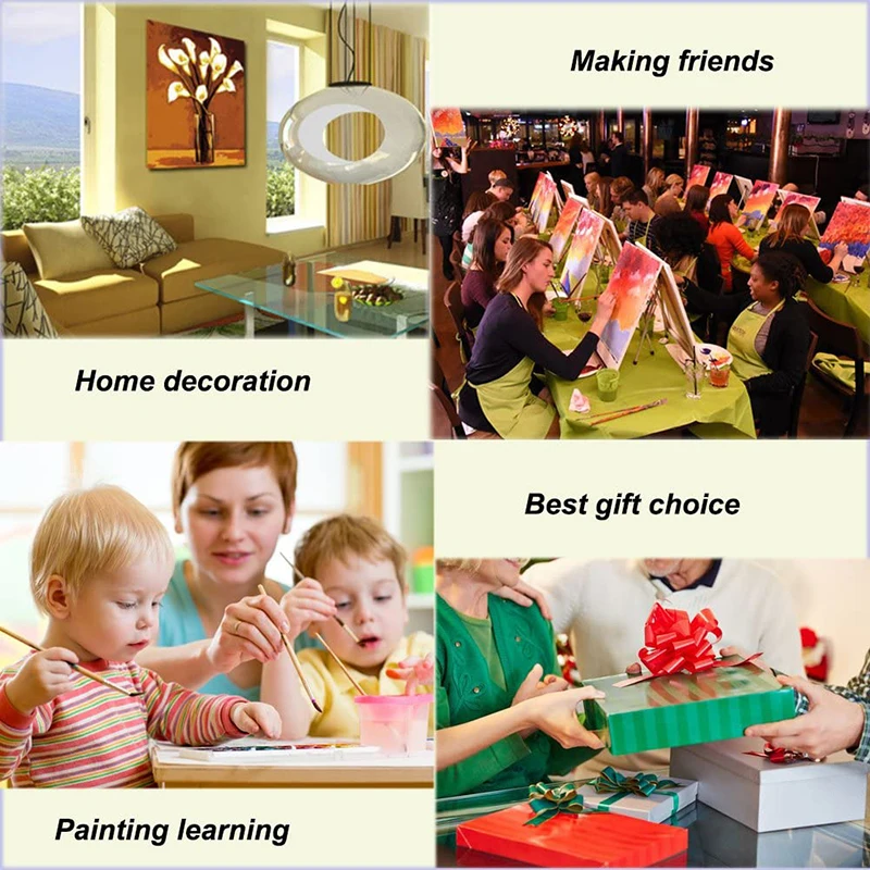 Размер 40x50 без рамки Материал: ткань Canvans В комплекте Аксессуары: 2-3 кисточки, пронумерованные эскизы, напечатанные на бумаге формата A4 и красочные акриловые флаконы для красок, обладают высокой прочностью, быстро сохнут и бесцветны. Руководство по окраске: Шаг 1: Очистите область рисования, чтобы не испачкать ткань, и приготовьте стакан воды и мягкие бумажные полотенца. Так как кисть используется впервые, ее можно аккуратно замачивать, чтобы смягчить щетину. Стирайте ручку каждый раз, когда цвет меняется или Завершайте работу, чтобы не оставлять пятен. Цвет акриловой краски очень гладкий, ровный, быстро испаряется и сохнет, поэтому после окончания вам нужно закрыть крышку, чтобы избежать высыхания, цвет очень хороший, при правильном хранении, используется для до 10 лет. Поскольку необходимо использовать цвета, многие бренды предоставляют больше цветных флаконов, поэтому цвета будут переливаться при частом рисовании, И нет необходимости сохранять больше контента при подсветке, чтобы убедиться, что все цифры и черные границы на картинке закрыты. Шаг 2: Использование одного и того же номера в 1 для рисования сэкономит время на стирке ручки. Если вам нужно ускорить процесс, 2-3 человека могут нарисовать 1 картинку одновременно, в зависимости от размера изображения. Художник должен рисовать слева направо, чтобы не намочить руки. Если подлокотник слишком прочный и пятно с нумерованными чернилами не окрашено, вы можете использовать прилагаемую бумагу с номером A4 для повторного сканирования. Если вы допустили ошибку, подождите немного, чтобы удалить цветной слой и накрыть правильный цвет. Для тех, кто не знаком с живописью, части, требующие тонкого выражения (например, лица или контуры), требуют высокой четкости. Вы должны немного покрасить детали. Как только вы привыкнете, вы сможете покрасить эти части. Выглядит лучше, рекомендуется использовать самую маленькую ручку для этого контура. В остальном следует использовать перо большего размера и избегать чрезмерно сильных ладоней при использовании ручки.