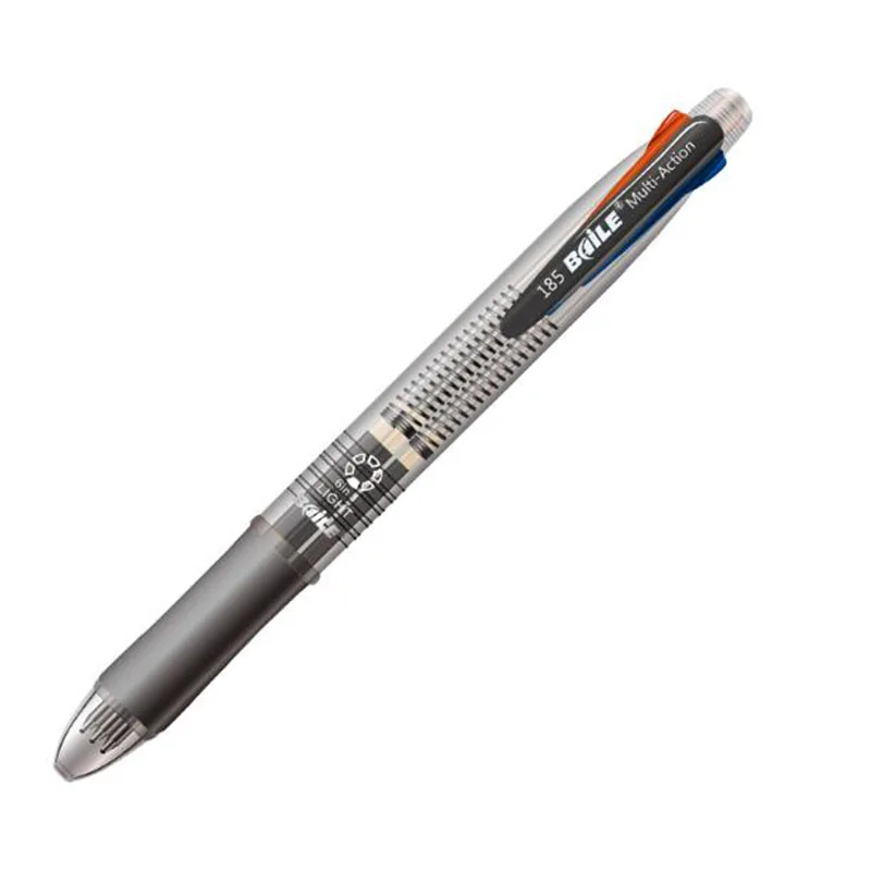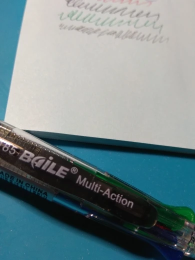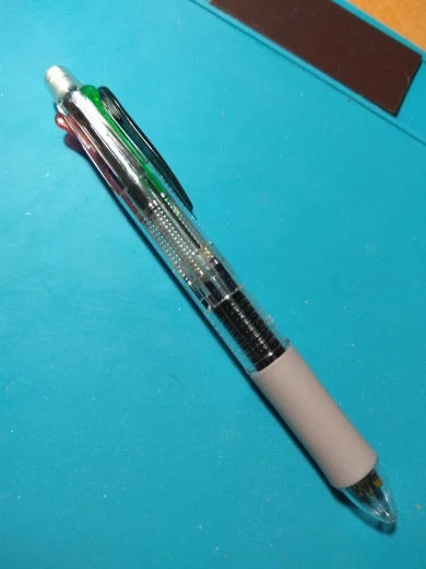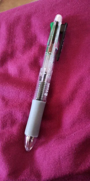 Хорошая ручка. На всех пастах защитные колпачки от высыхания при хранении. Место обхвата - серая вставка на подобие резины. Есть ластик. Карандаш активируется самой прищепкой с надписью '"multi-action". Если после активации ее нажимать ещё - подаётся стержень. Каждое нажатие - фиксированный шаг подачи.