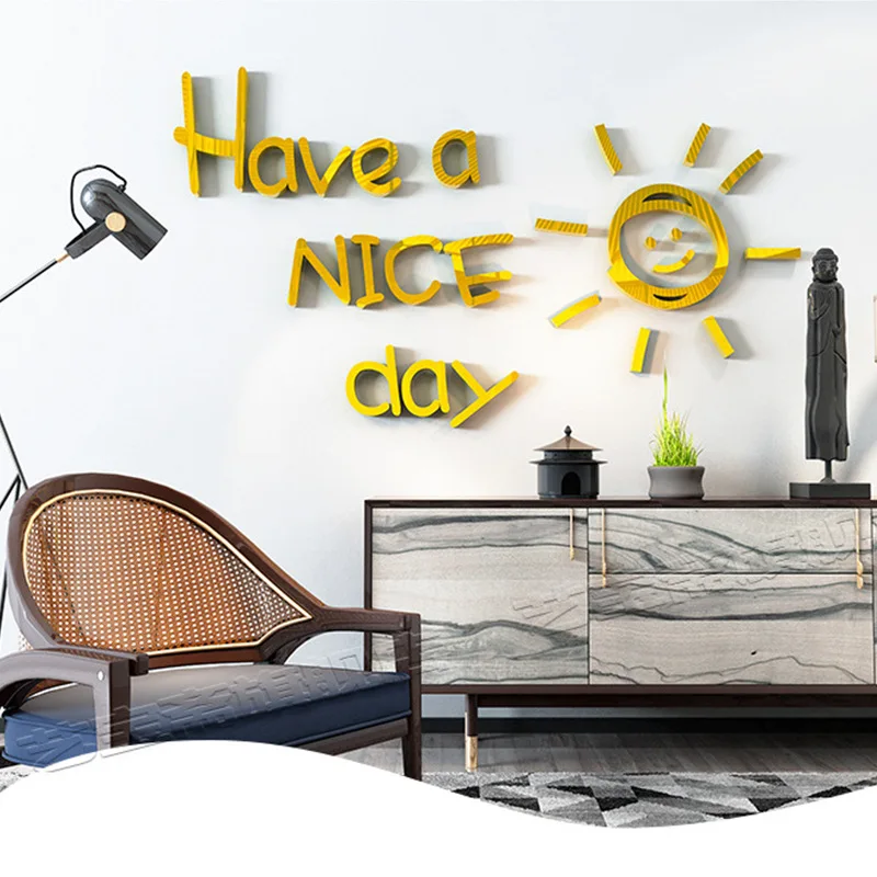 3D зеркальные настенные наклейки, текст, солнце, настенный стикер, сделай сам, акриловый фон для телевизора, художественная роспись, Декор, зеркало, ванная комната, офис, украшение дома Материал: акрил Цвет: как показано Список продуктов: 1 * Настенный стикер