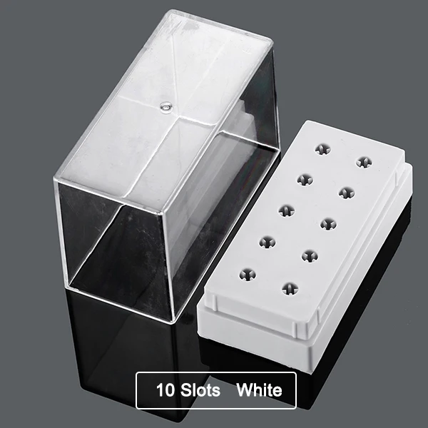 Прозрачный пластиковый ящик для хранения с 10 слотами для сверл для ногтей, контейнер m...