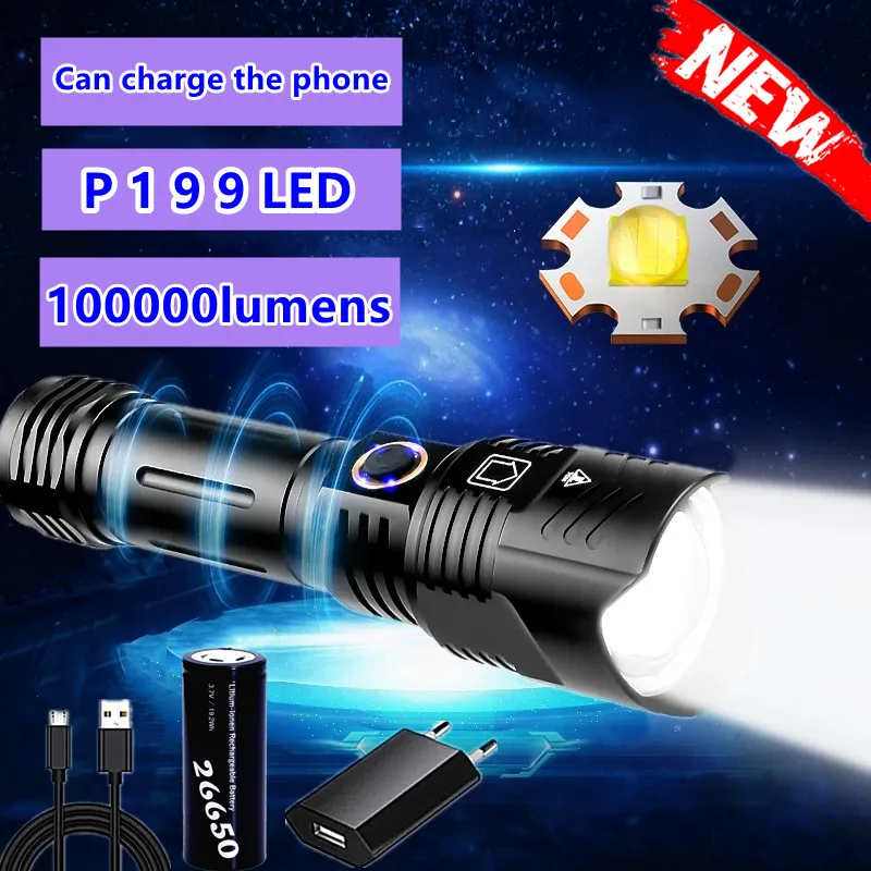 2021 100000LM XHP199 Мощный светодиодный вспышка светильник USB под...