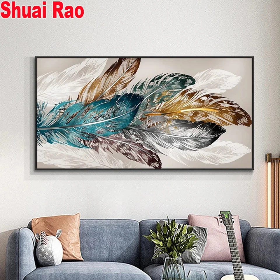 Большой перо 5d diy алмазная живопись полный дрель квадратные Стразы мозаика Алмазная вышивка круглый бриллиант декор для домашнего декора