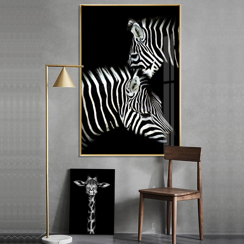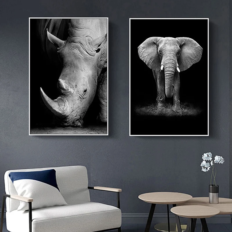 Художественная живопись на холсте Черно-белый стиль Лев Зебра слон жираф Печатный постер Европейский ветер гостиная настенное украшение