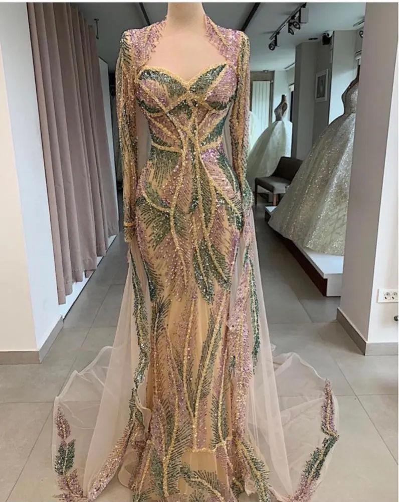 Женское вечернее платье-русалка, платье цвета шампанского с рукавом...