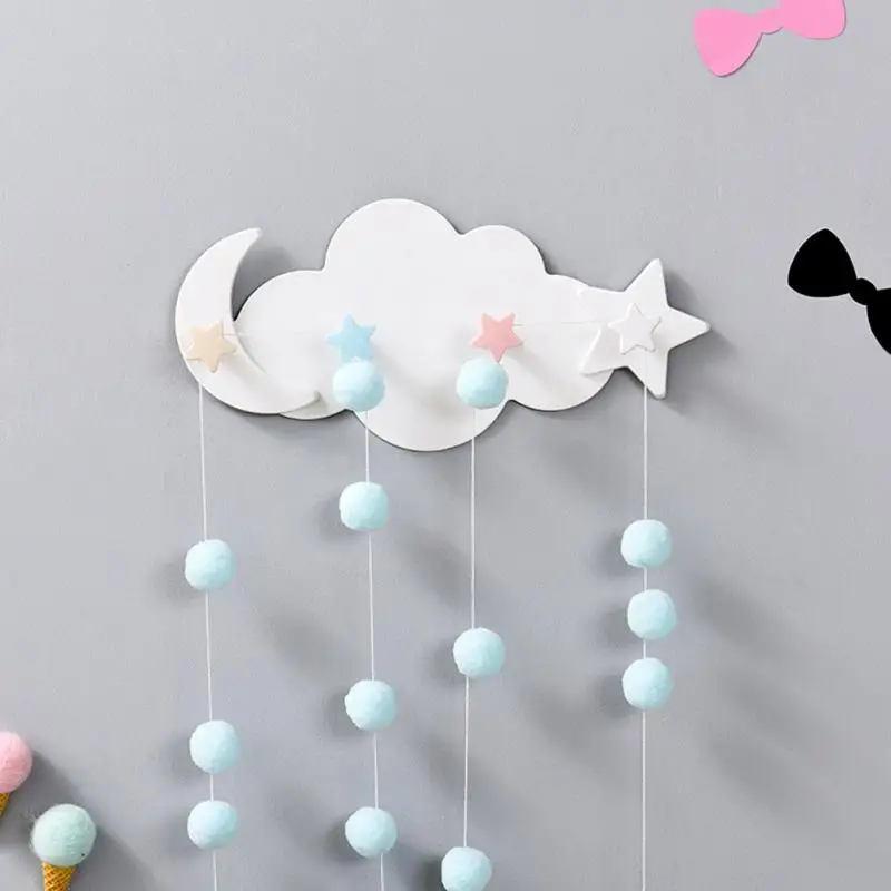 Милый мультяшный крючок с изображением луны и звезд, наклейка с облаками крюк бесшовная дверная вешалка для одежды ключ висит держатель для детской комнаты, украшения для хранения