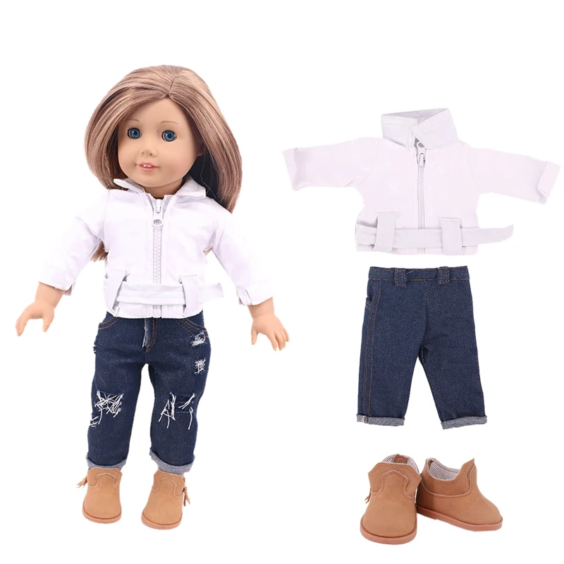 Кукольная одежда, 2 шт.компл., белая куртка + черные джинсы, костюм...