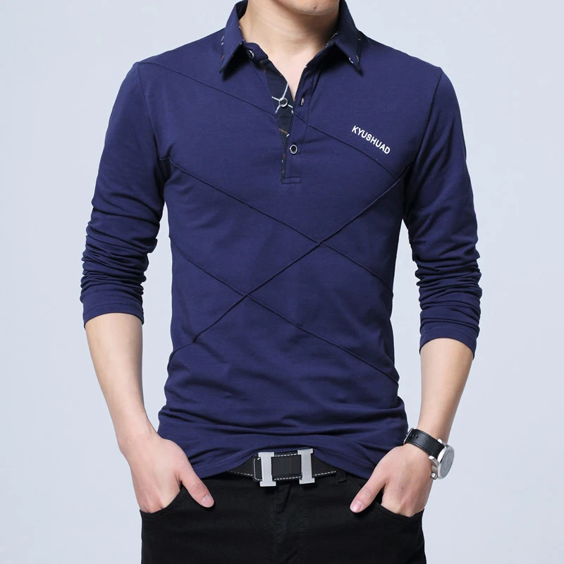 Мужские рубашки поло с длинным рукавом, модные хлопковые рубашки по...