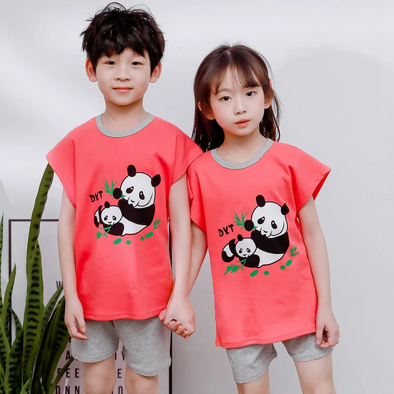 Пижамный комплект детский летний с коротким рукавом, одежда для сна с героями мультфильмов, ночная рубашка для мальчиков и девочек