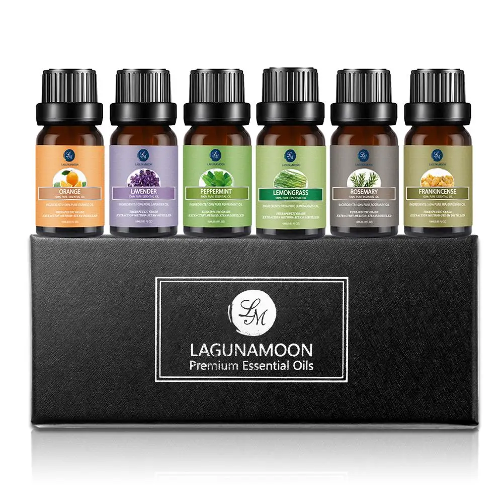 Чистые эфирные масла Lagunamoon 10 мл 6 шт. подарочный набор увлажнитель для ароматерапии апельсин Лаванда мята Лемонграсс розмарин ладан
