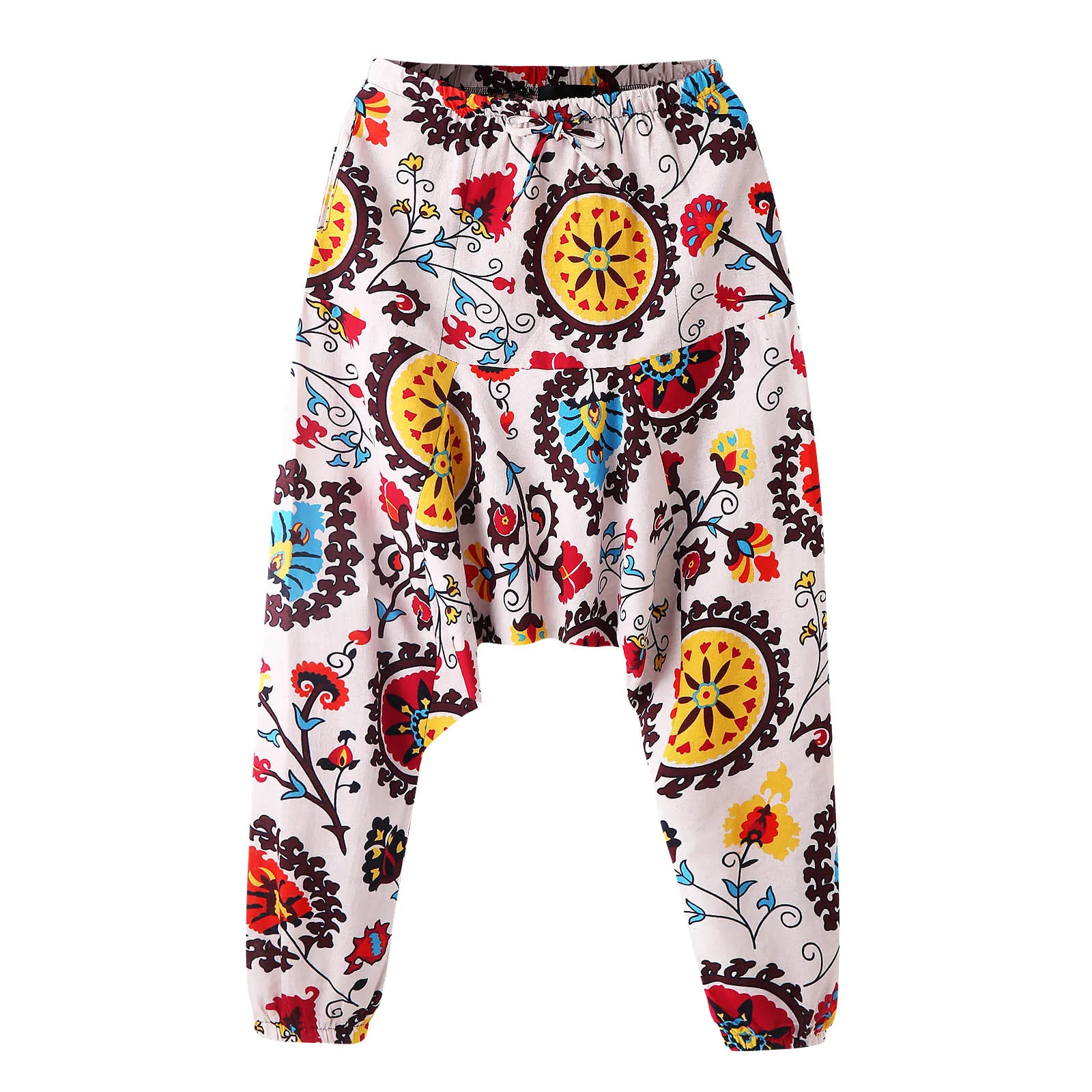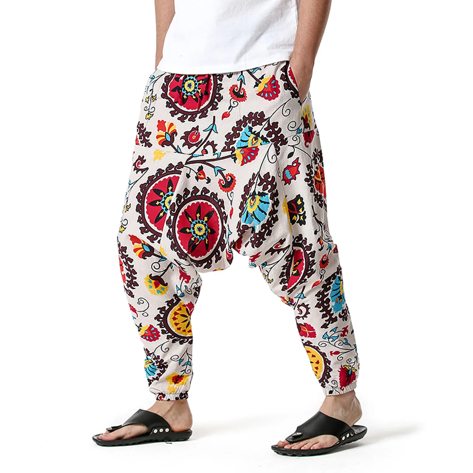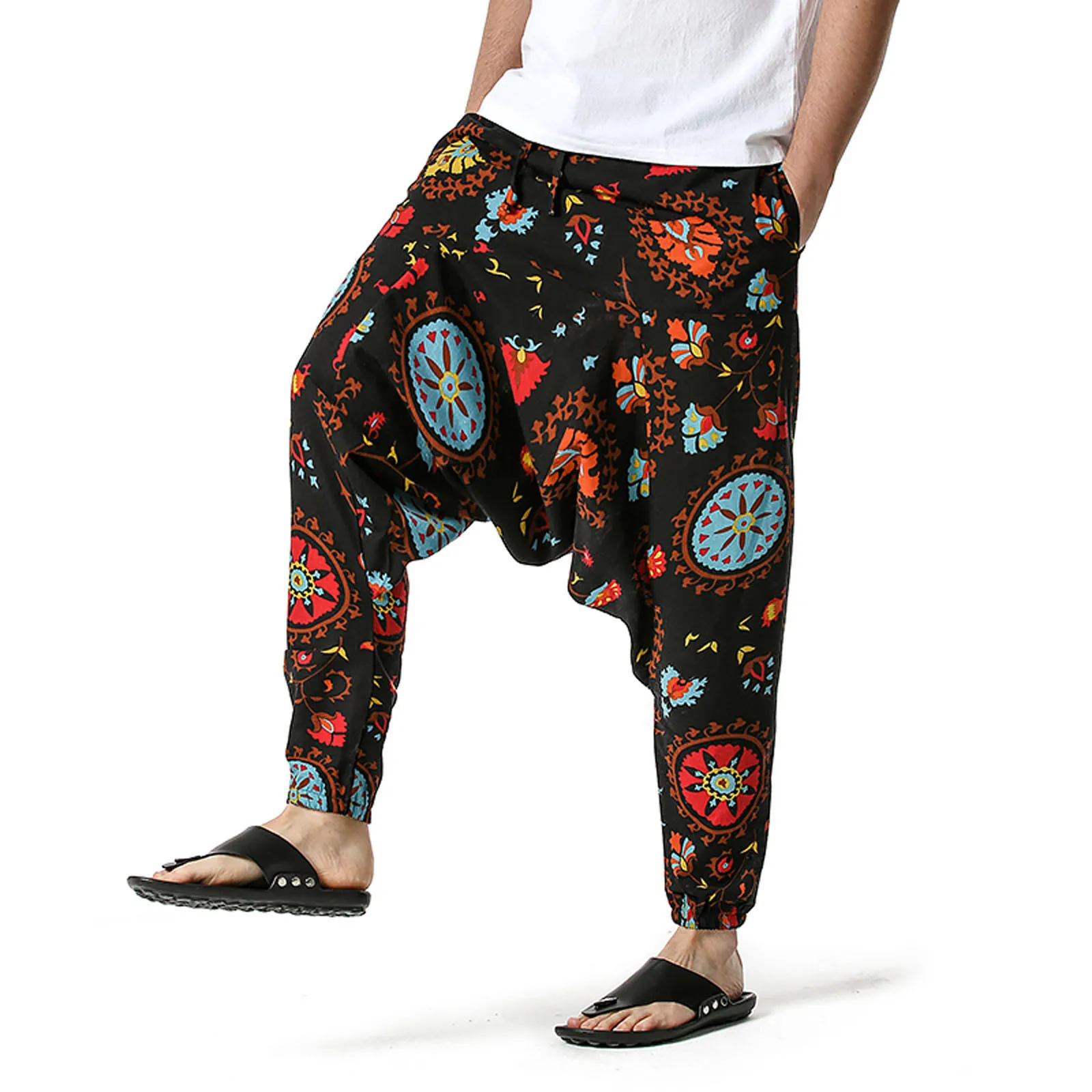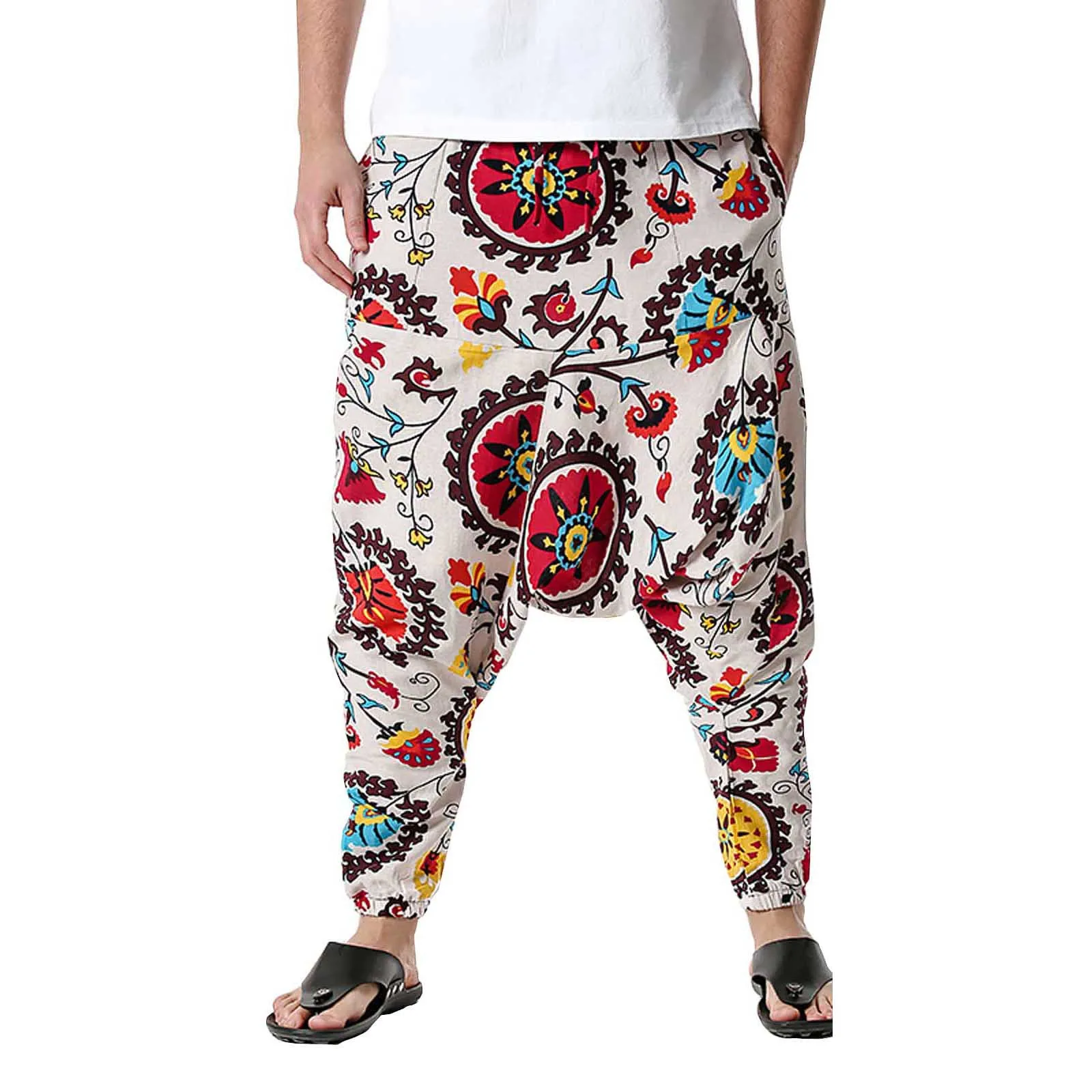 Брюки-султанки мужские из хлопка и льна, уличная одежда, свободные штаны с богемным принтом, модные брюки-султанки в стиле Харадзюку, y2k, весна-лето