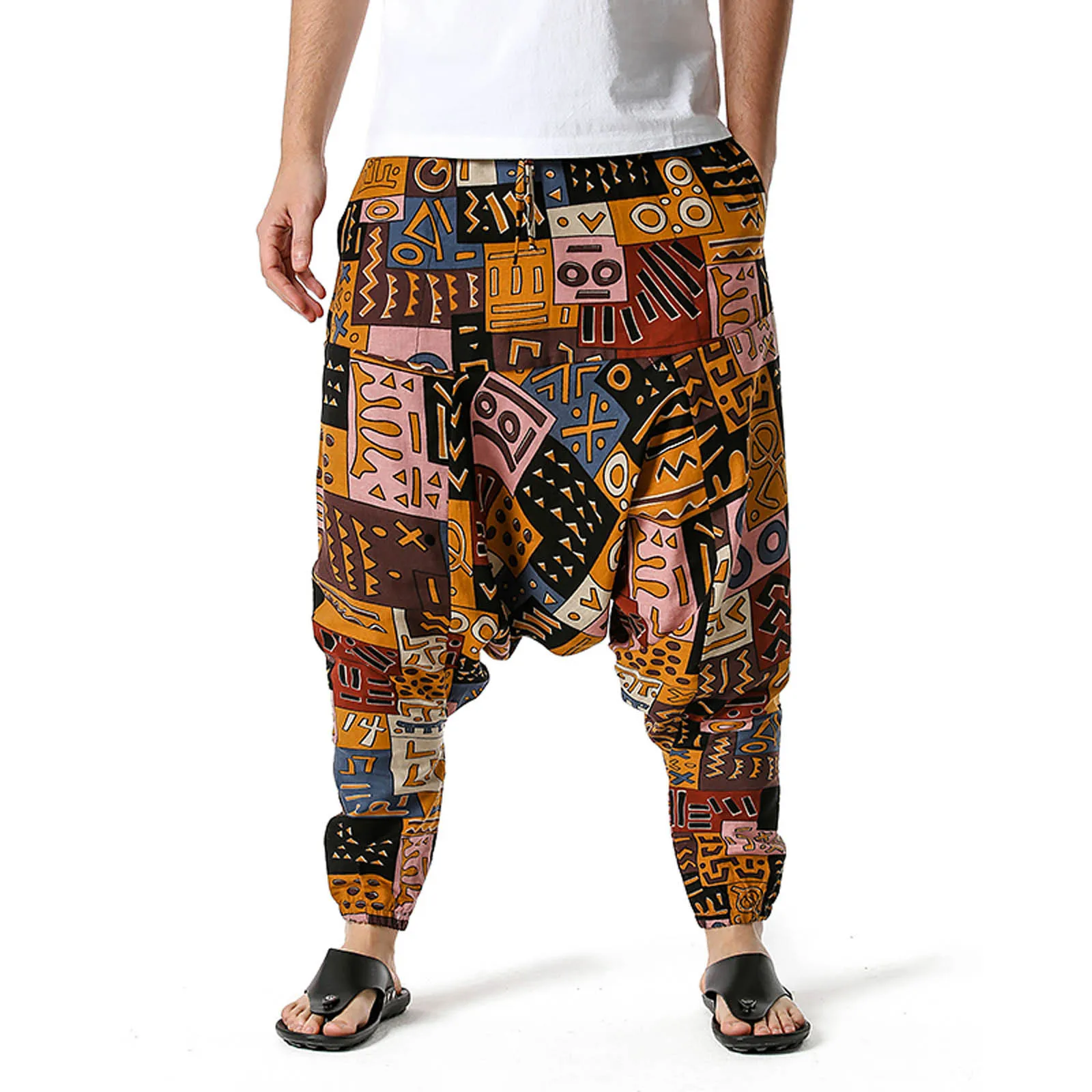Мужские хлопковые мешковатые штаны в стиле хиппи, бохо, цыганский А...
