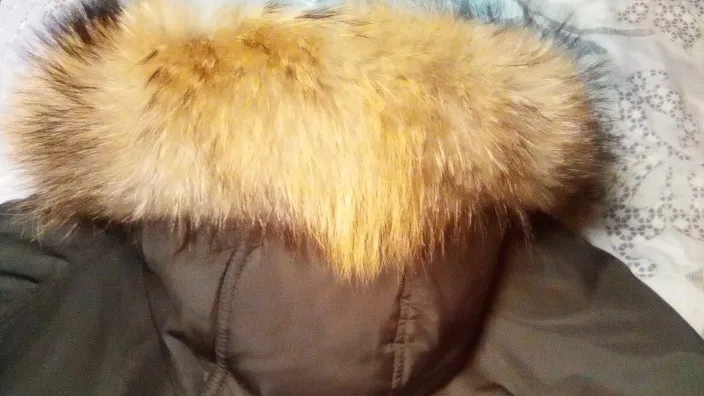 Очень пышный и густой мех! Продавец упаковал в воздушный пакет, чтоб мех не помялся. На морозе воротник ещё больше распушился. Только не положили пуговиц, придется искать. Большое спасибо продавцу и производителю!